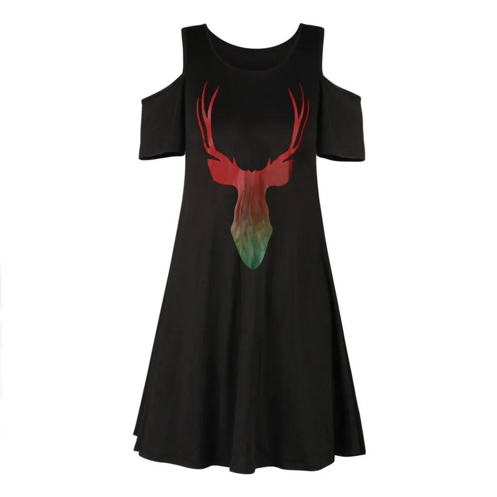Женская обувь с коротким рукавом на плечо с принтом на Рождество Санта Клаус елка Платье