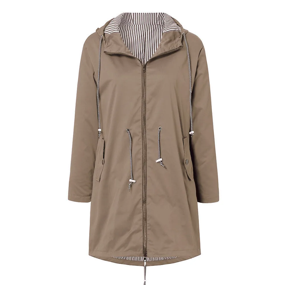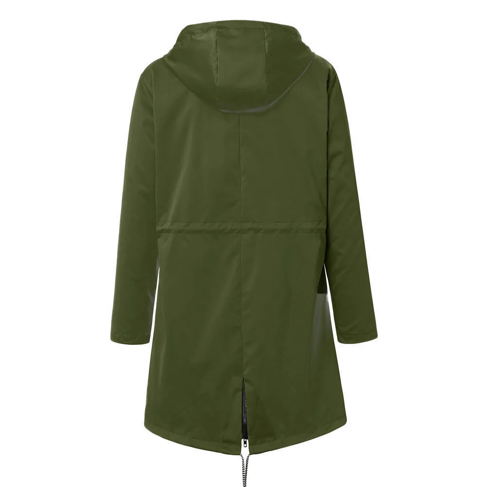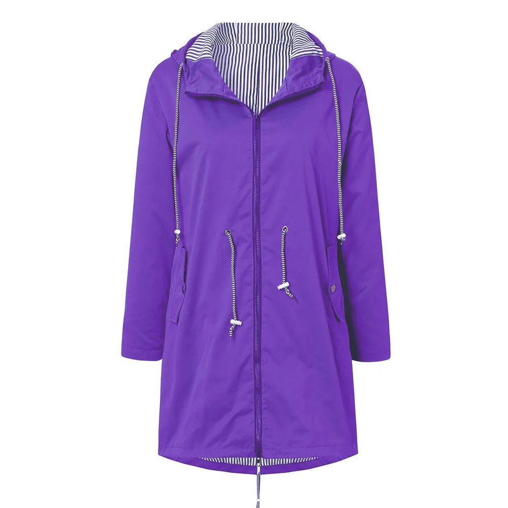 Женская однотонная непромокаемая куртка на открытом воздухе плюс размер Водонепроницаемая с капюшоном ветрозащитная Свободная куртка