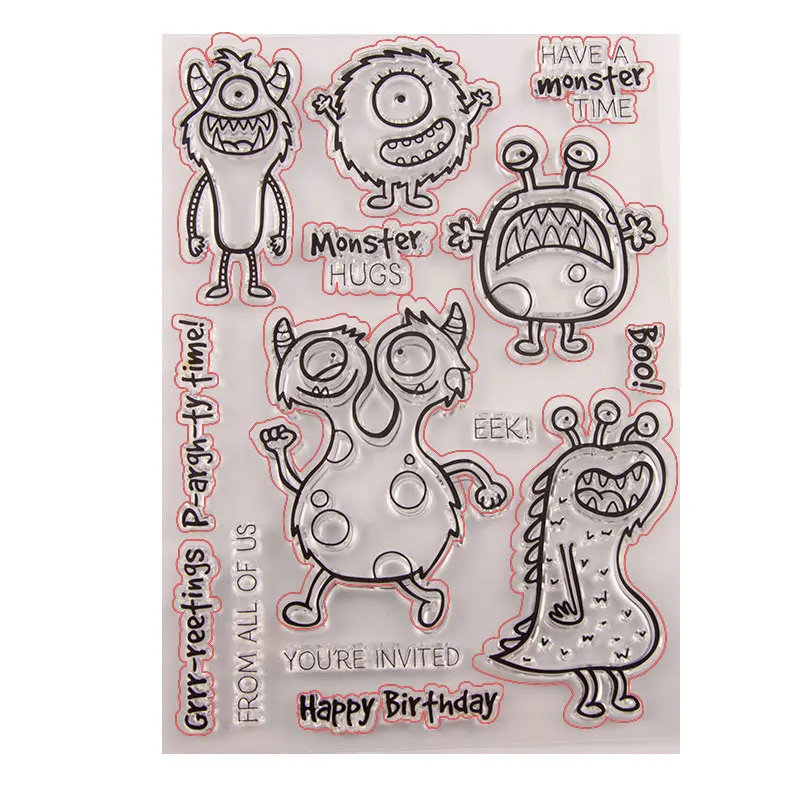 Monster hug металлические режущие штампы и четкий штамп печать на день рождения для DIY Скрапбукинг создание фото альбом карта украшения поставки