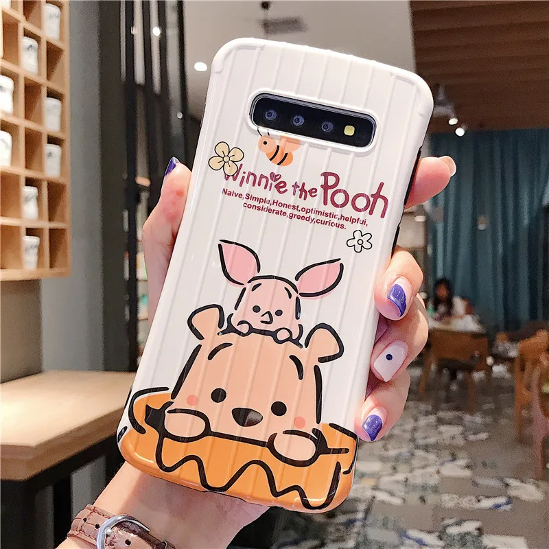 IUENUA изогнутый чемодан медвежонок пух чехол для телефона samsung Galaxy Note 10 S8 S9 S10 Plus Note 9 8 милый мультфильм противоударный чехол