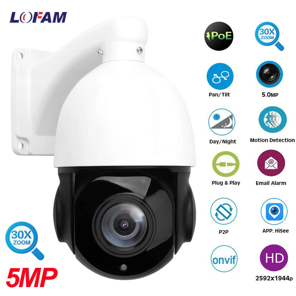 LOFAM 5MP 1080 P 2MP poe ptz IP камера Открытый День Ночь сеть IPC Onvif скорость купольная панорамная камера/наклон 30X зум CCTV PTZ камера системы безопасности