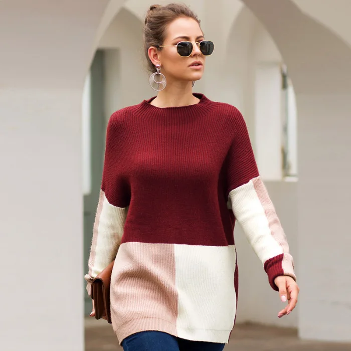 2. Дизайн: длинный рукав, сочетающийся цвет, свитер, Повседневный, свободный, пуловер свитер.
