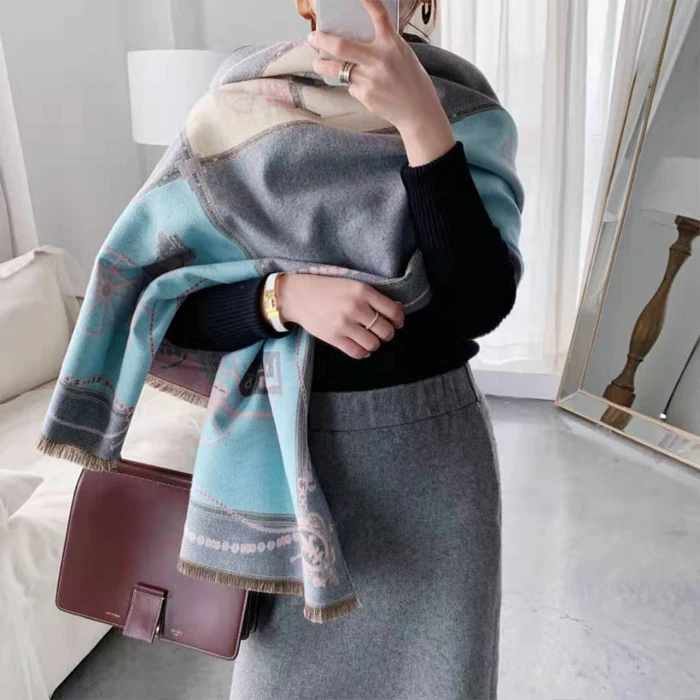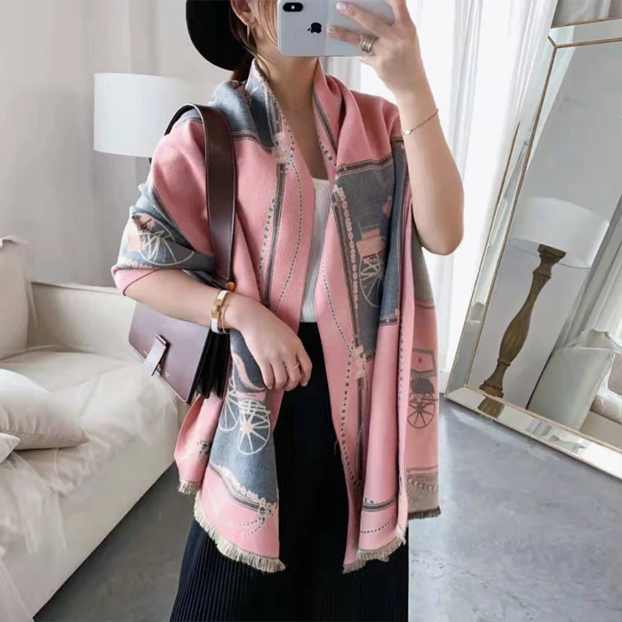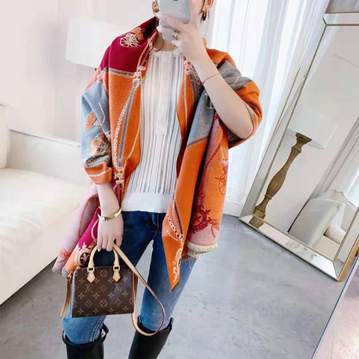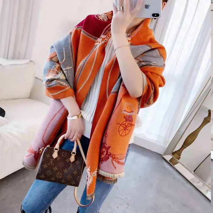 Роскошный бренд 2019 зима новый карета тёплый шарф-шаль утолщаются кисточки Лошадь Кашемир-как мода шоу пончо накидка Женская Пашмина
