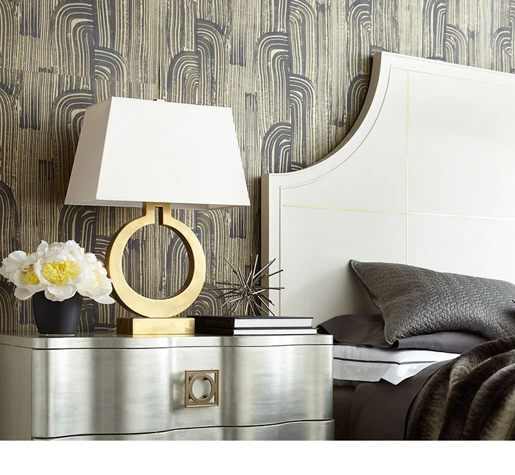 Тканевый абажур, современный минималистичный Настольный светильник из кованого железа для спальни, гостиной, балкона, коридора, светодиодный Настольный светильник Размер: w38 * h56см Цвет: Золотой, серый Светильник источник: E27 Процесс: живопись Без лампы