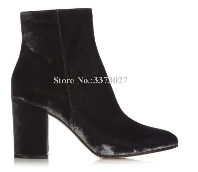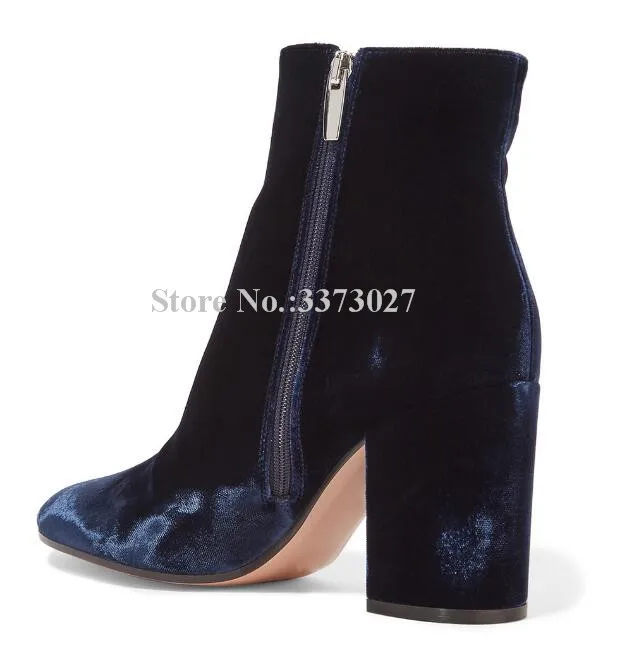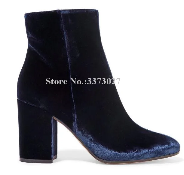 Роскошные бархатные ботильоны на массивном каблуке; Женские полусапожки для банкета с круглым носком; Цвет синий, зеленый, серый; Женские модельные туфли больших размеров; Прямая поставка
