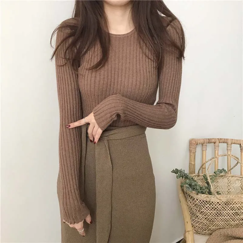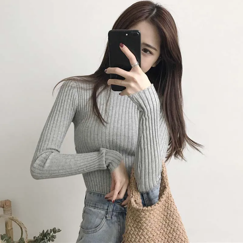 Особенности: корейский стиль; Простой; Круглый вырез; Однотонный; Приталенный; Джемпер; Длинный рукав; Свитер