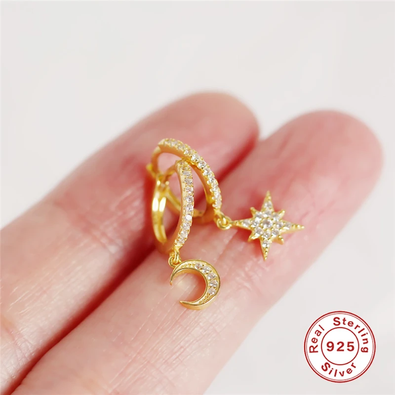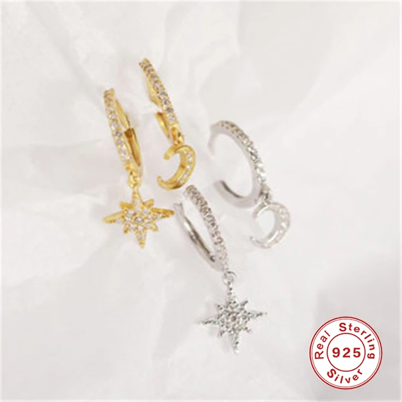 Красивый циркон 100% Серебро 925 пробы Серьги-гвоздики с подвесками для Для женщин набор звездных крестообразных шар с сердечками кусочек очарование серьги-шпильки A30