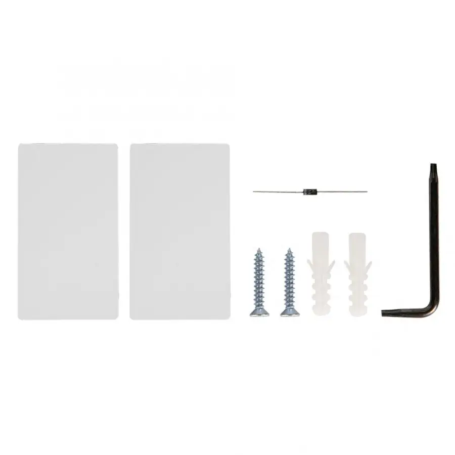 1 х металлический контроль доступа 1 x винтовая посылка (в комплекте гаечный ключ) 1 х пульт дистанционного управления (встроенный аккумулятор) 2 x ID карты Руководство пользователя-1 шт.;