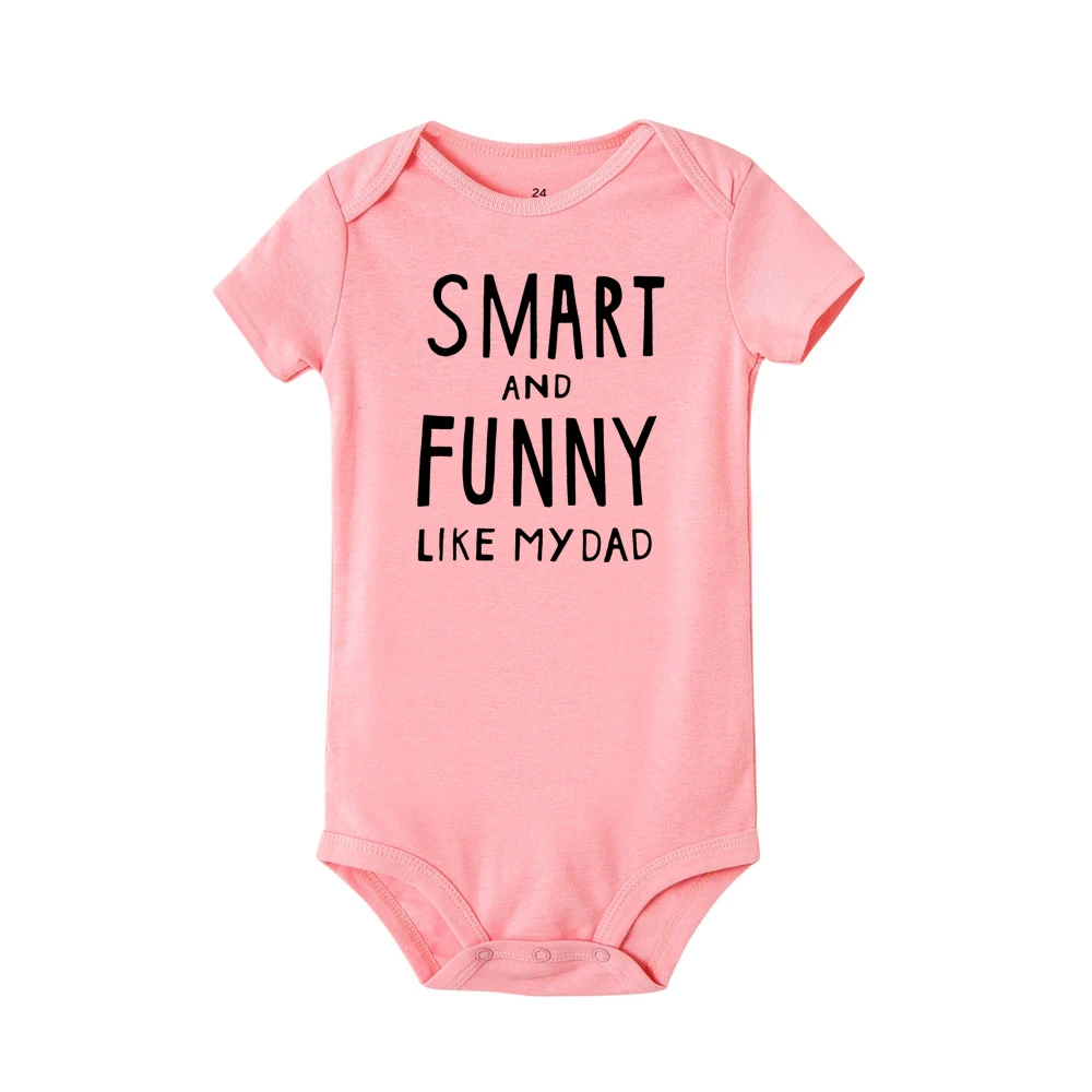 Умный и забавный, как мой папа, милый детский комбинезон, летняя одежда с короткими рукавами для младенцев, модная одежда