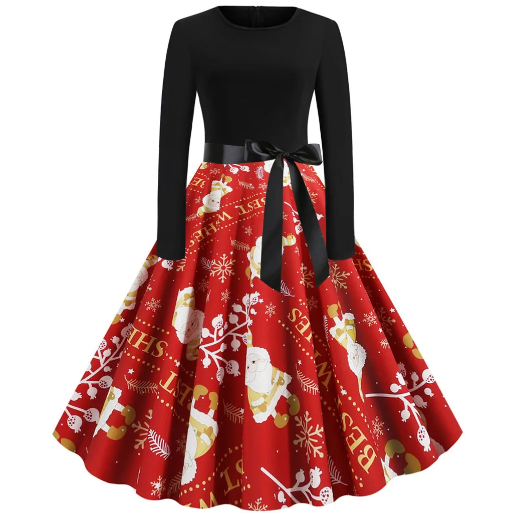 Винтажная строчка с рождественским принтом плюс Европейский королевский стиль дает вам ретро и элегантный вид; fit & расклешенный силуэт подчеркивает Вашу фигуру