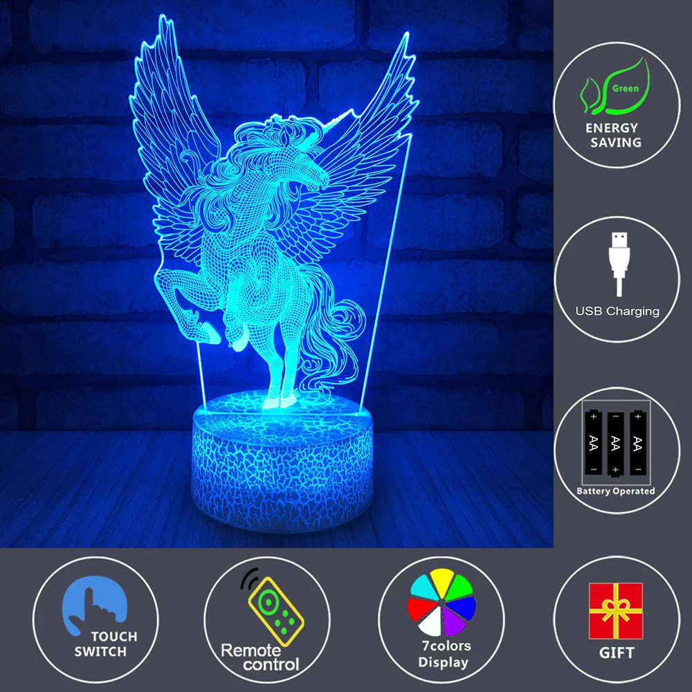 Пульт дистанционного/сенсорного управления 3D светодиодный Ночной светильник, модная серия единорогов, 7 / 16 цветов, светодиодная настольная лампа для детей, рождественский подарок, украшение дома