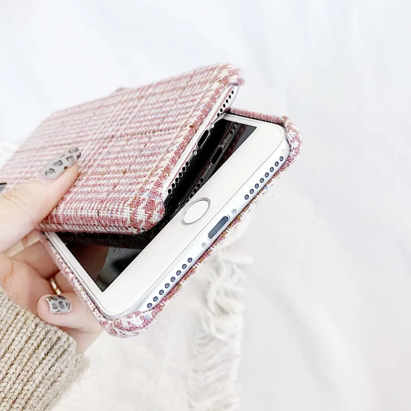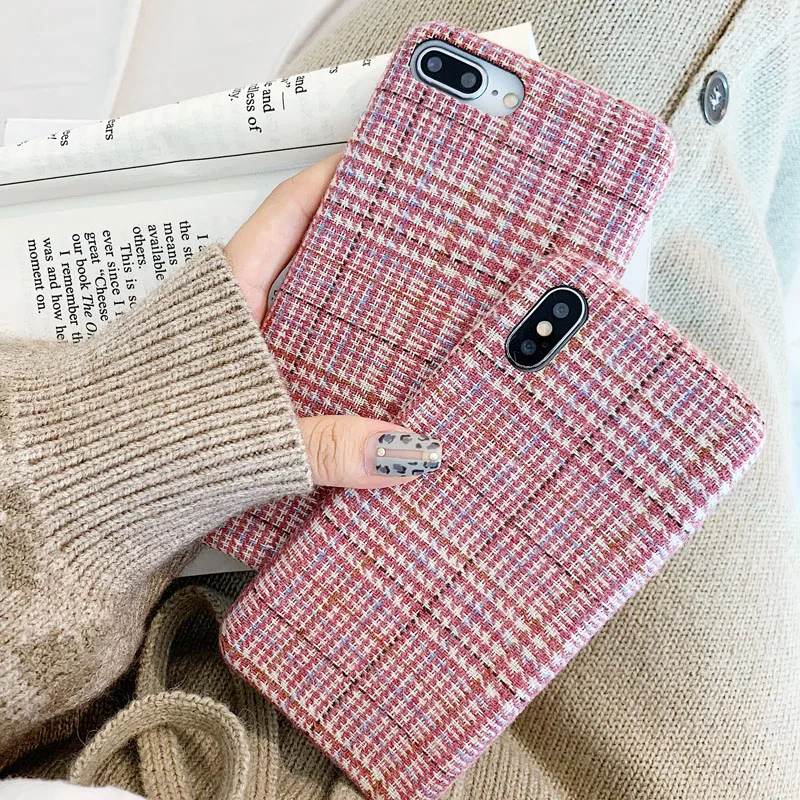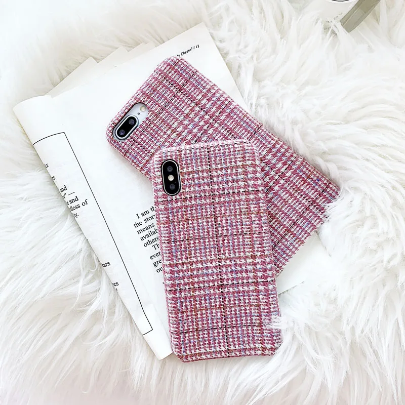 EKONEDA розовый клетчатый теплый тканевый чехол для iPhone 11 Pro Max XR, тканевый чехол для девочек чехол для iPhone 7 6 S 8 Plus X XS Max