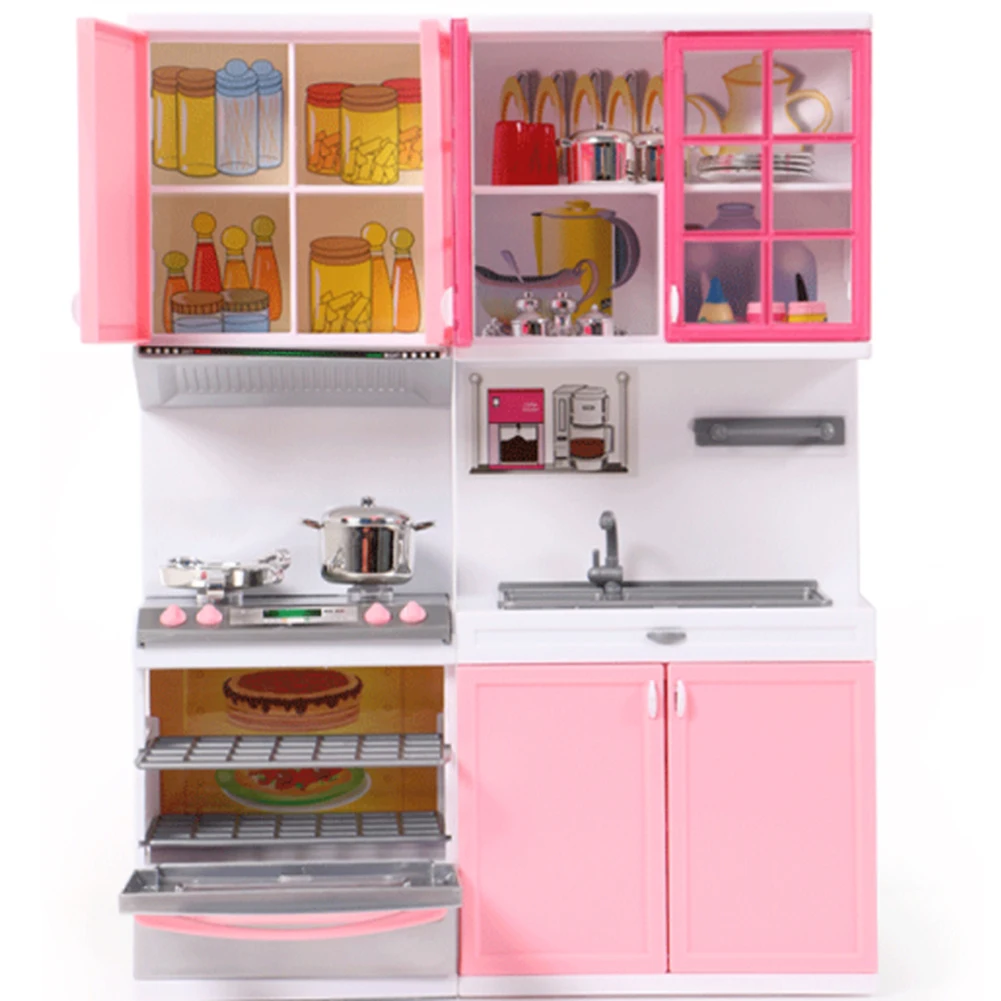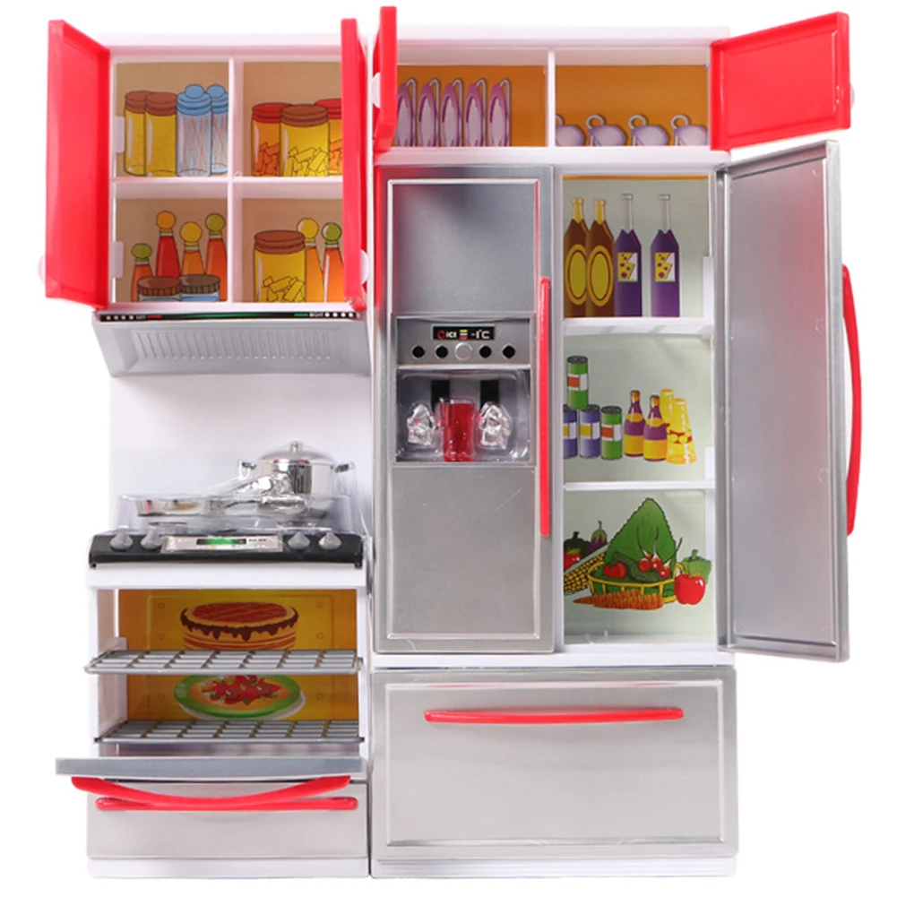 Мини Кукольный дом мебель светодиодный музыкальный плита холодильник Детские ролевые игры Пособия по кулинарии игрушка