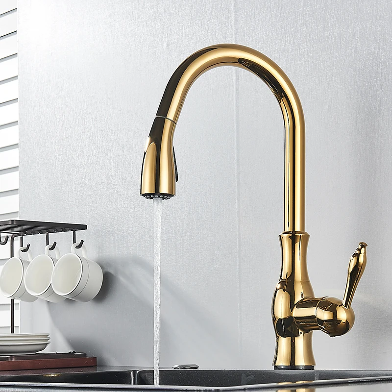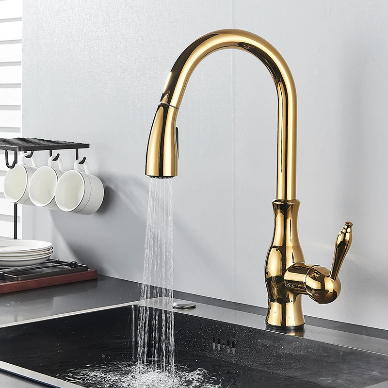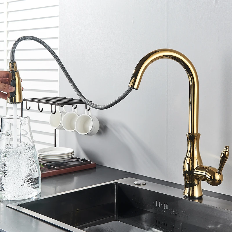 Хромированный/Матовый никель/черный/золотой/розово-Золотой Дека установить выдвижной кухонный кран 360 ° поворот горячей холодной воды смеситель для раковины