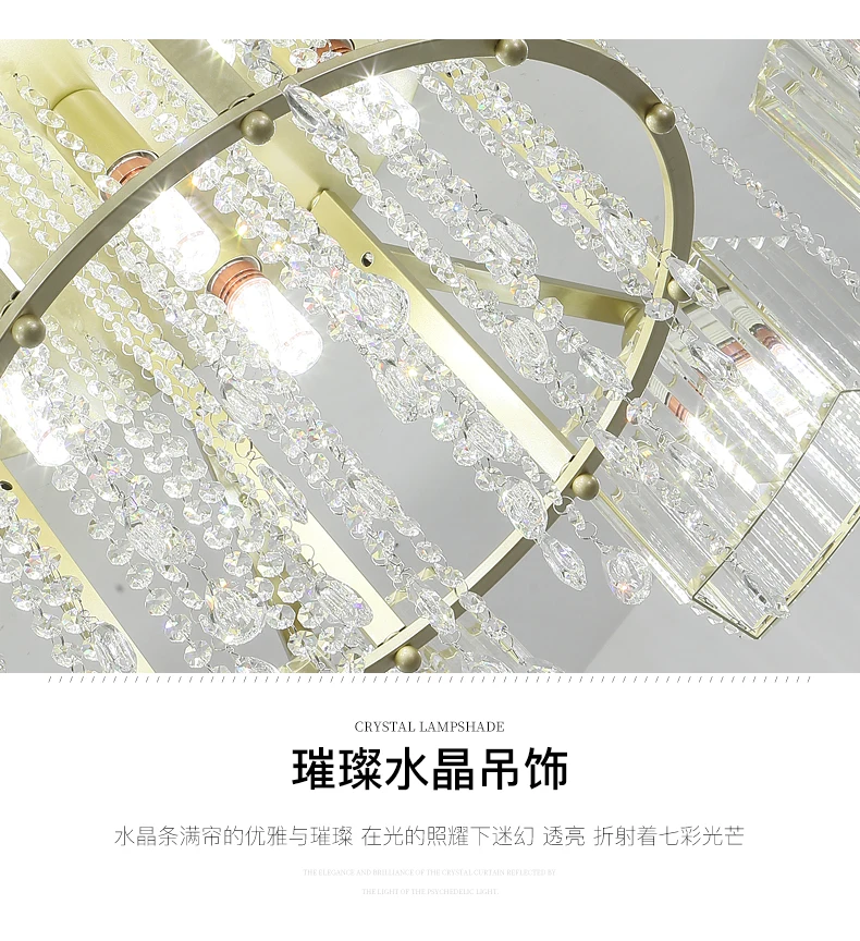 Европейский стиль гостиной золотой черный кухня столовая спальня прикроватная Лофт K9 хрустальная люстра E14 декоративная светодиодная потолочная лампа Размер: как показано на рисунке (для получения подробной информации, пожалуйста, свяжитесь со службой поддержки клиентов) Материал: хрусталь + Кованое железо Процесс: покраска + шлифовка Светильник источник: E27 Напряжение: 85-260 В Без лампы
