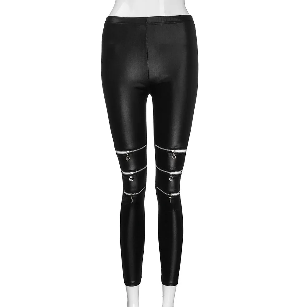 Женские леггинсы из искусственной кожи, модные высокоэластичные обтягивающие леггинсы на молнии, брюки, леггинсы из искусственной кожи с дырками, леггинсы mujer