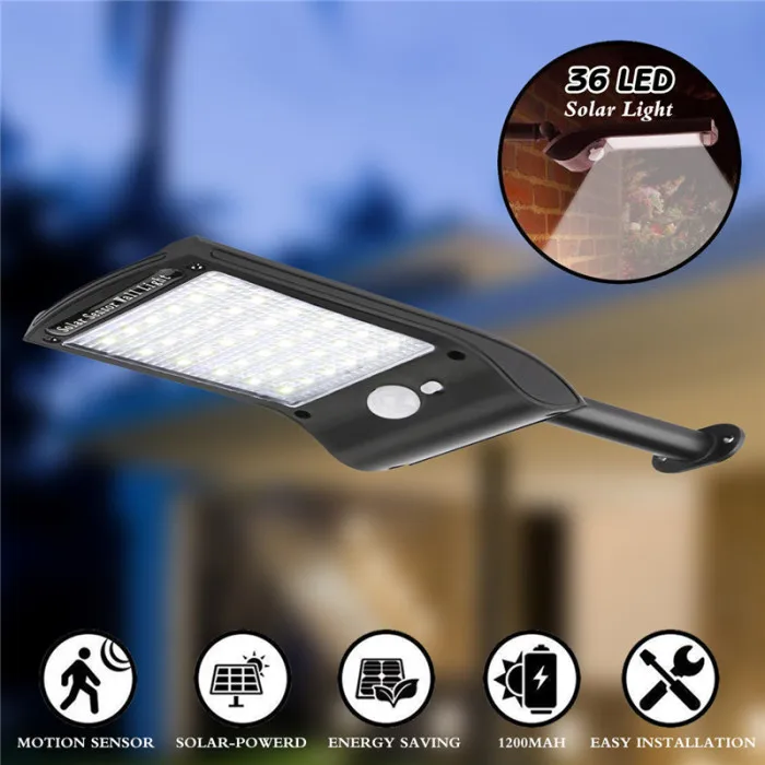Настенный уличный светильник с солнечной панелью, 36 светодиодный светильник с ИК-датчиком движения для улицы, сада, прогулок, DNJ998