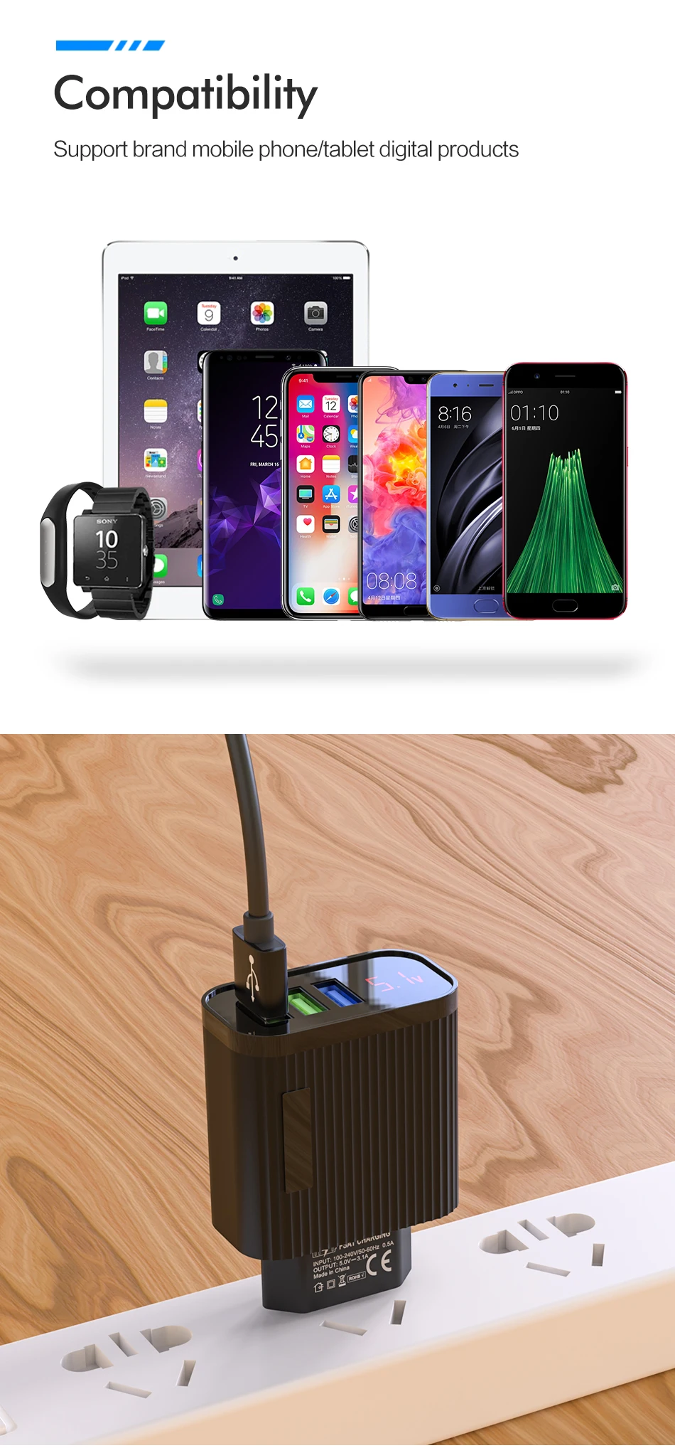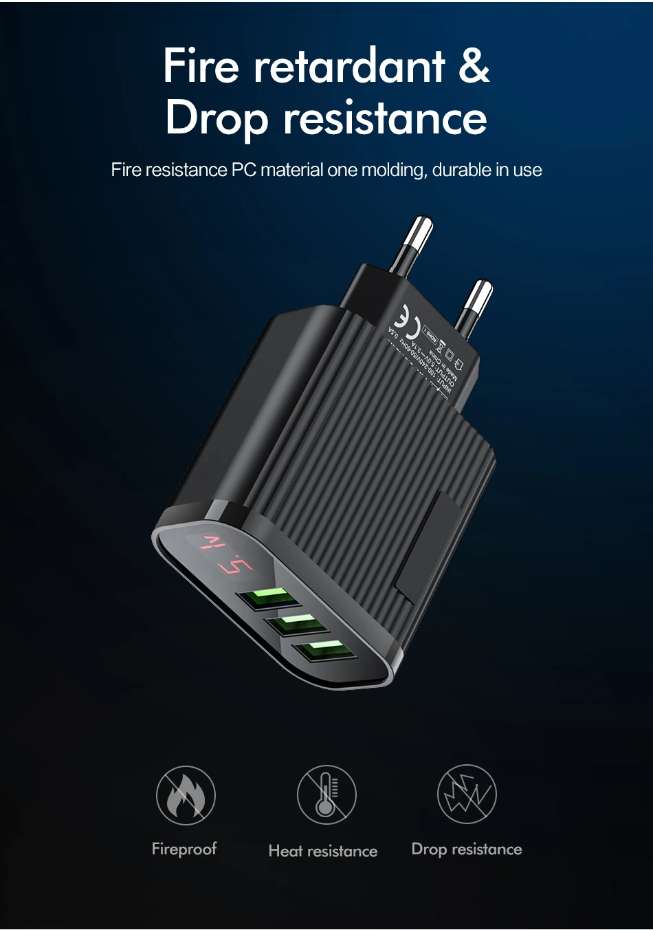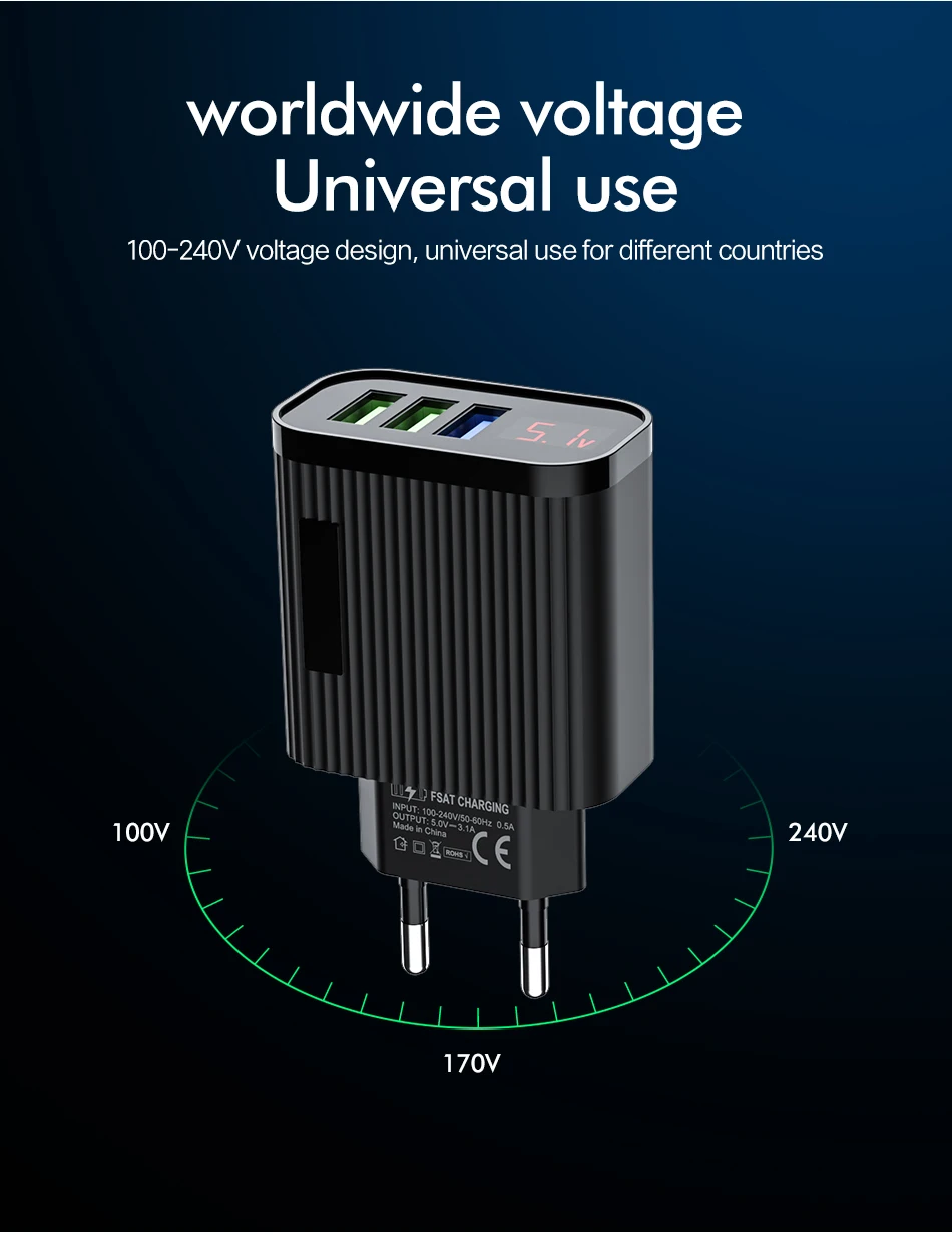 USB зарядное устройство, 3 порта, светодиодный дисплей, 3 А, быстрая зарядка, зарядное устройство для мобильного телефона, настенное зарядное устройство для iphone, samsung, Xiaomi, huawei, универсальное