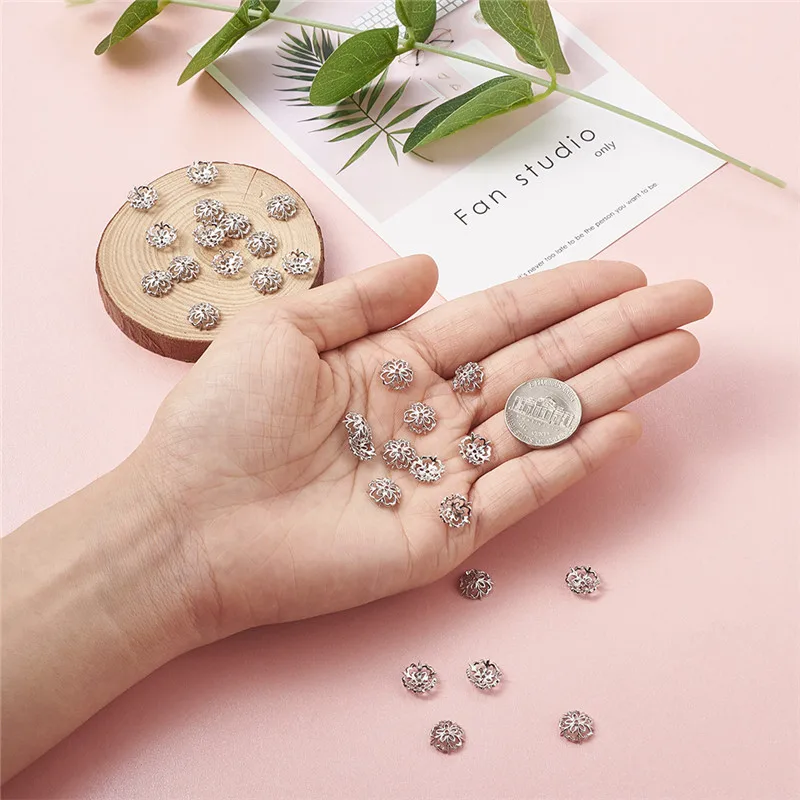 Pandahll 30 шт 5 лепестков цветов латунные колпачки для бисера концевые колпачки Платина для самостоятельного изготовления ювелирных изделий Аксессуары фурнитура 10x3mm