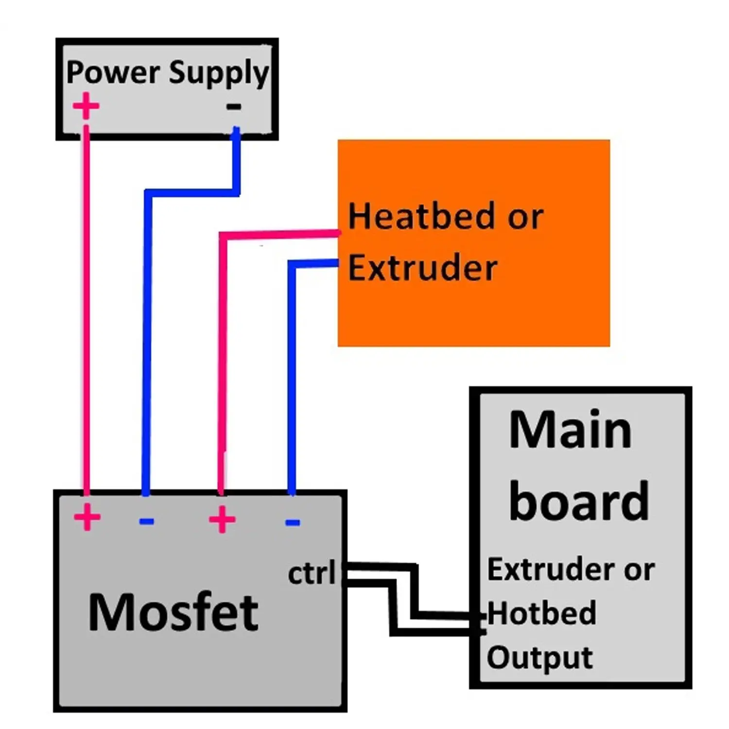 * Очень мощный MOSFET выдерживает более высокий ток, чем обычные RAMPS или другой контроллер принтера может обрабатывать