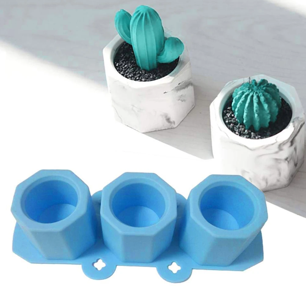 3 отверстия геометрический многоугольный бетонный цветочный горшок ваза силиконовая форма домашний декор