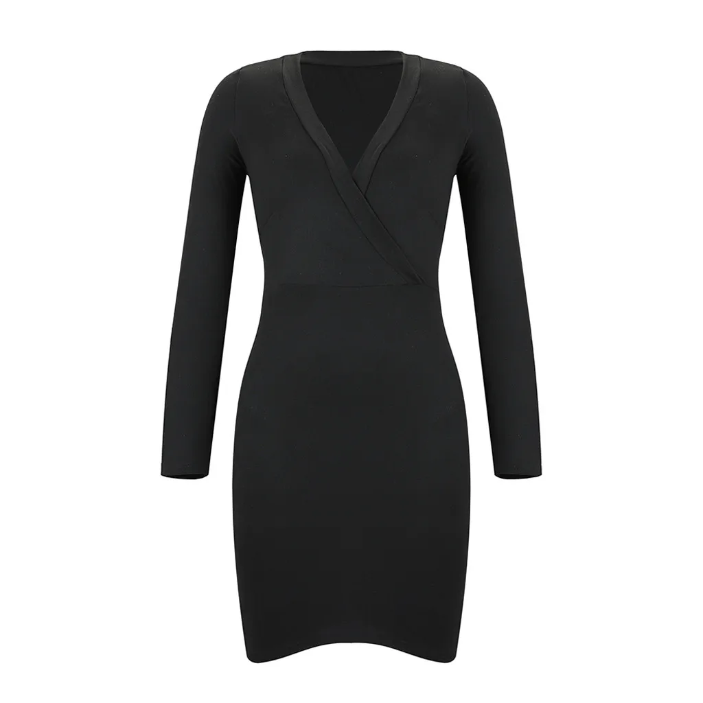 Особенности: сексуальный, w-образный вырез, однотонный, длинный рукав, длинный рукав, облегающее, мини-платье, повседневная одежда, летнее платье, летнее Повседневное платье ..
