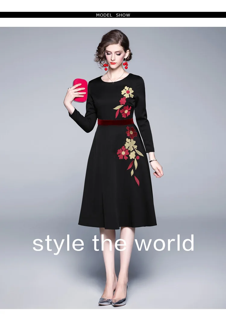 Женское бархатное платье с вышивкой и длинным рукавом, повседневные Черные вечерние платья средней длины, модель K3938 на осень, 2019