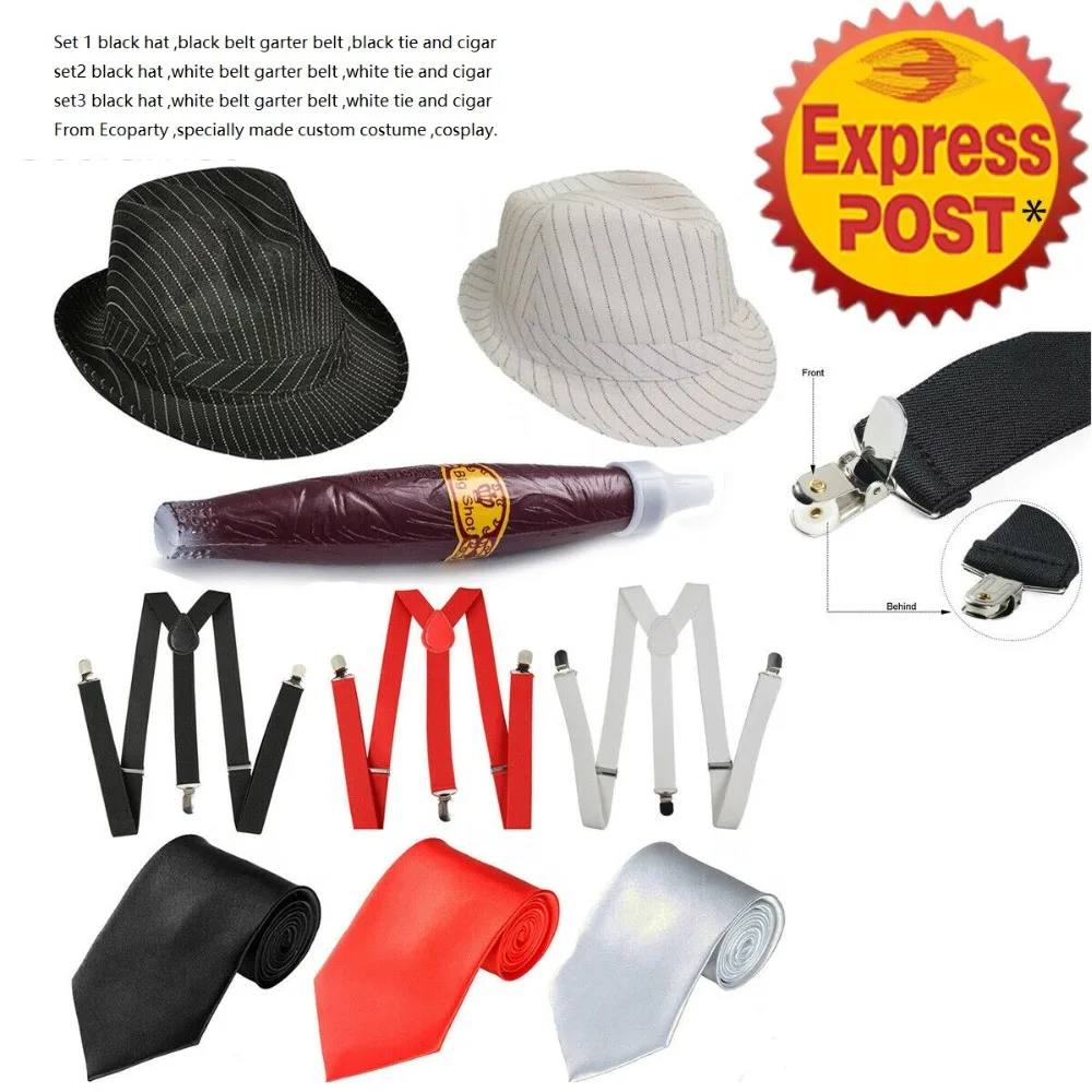 Посылка включает в себя: шляпу-1 шт., эластичные подтяжки для брюк y-образной формы-1 шт., бандаж-1 шт., поддельные сигареты-1 шт.