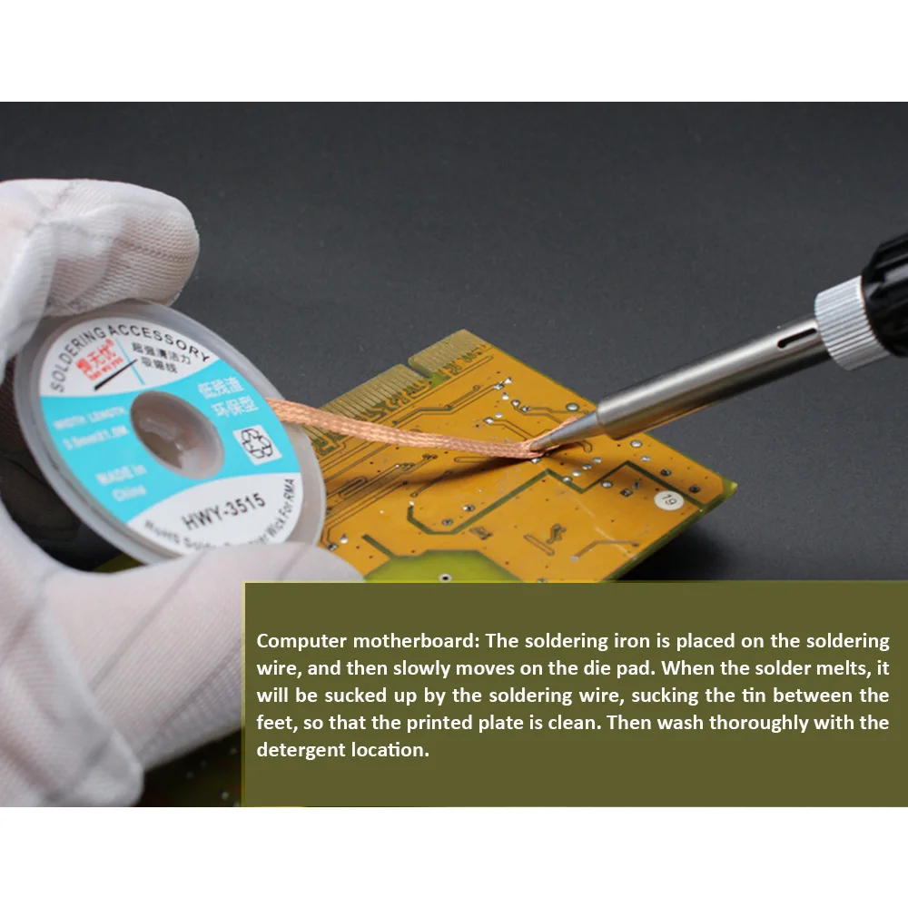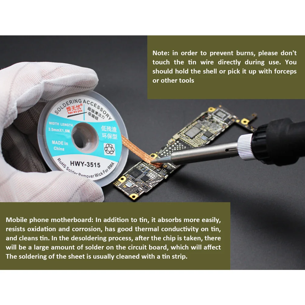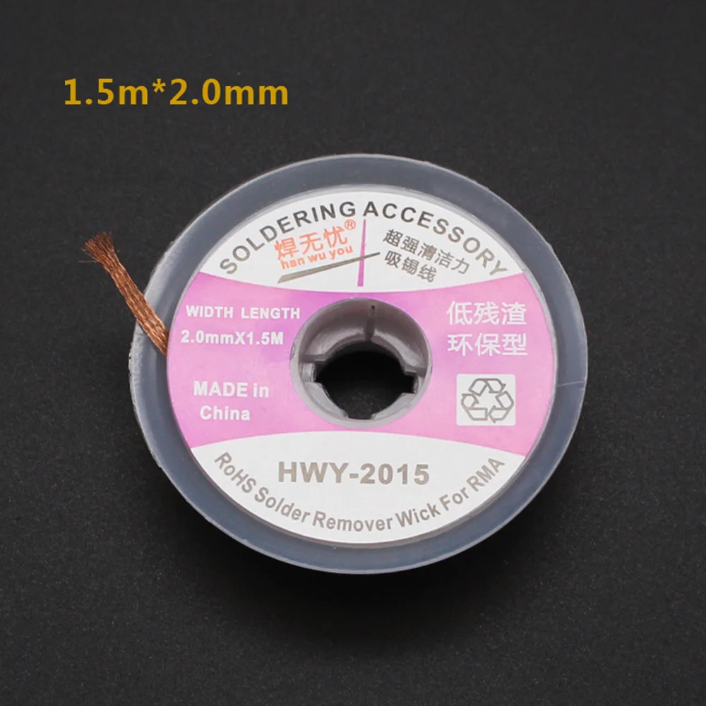 Спецификации Модель: HWY-1515, HWY-2015, HWY-2515, HWY-3015, HWY-3515 Широкая длина: 1,5 мм * 1,5 м/2,0 мм * 1,5 м/2,5 мм * 1,5 м/3,0 мм * 1,5 м/3,5 мм * 1,5 м Материал: импортный плетеный ремень Температура плавления: 280 (°C) Особенности 1. 100% Новинка и высокое качество 2. Ткань из импортного материала высокой плотности для лучшей адсорбции 3. Низкий уровень остатка, верхний олово, устойчивость к окислению, отсутствие точки останова, антикоррозия Посылка включает в себя 1 х не-чистая всасывающая Оловянная линия 3305468