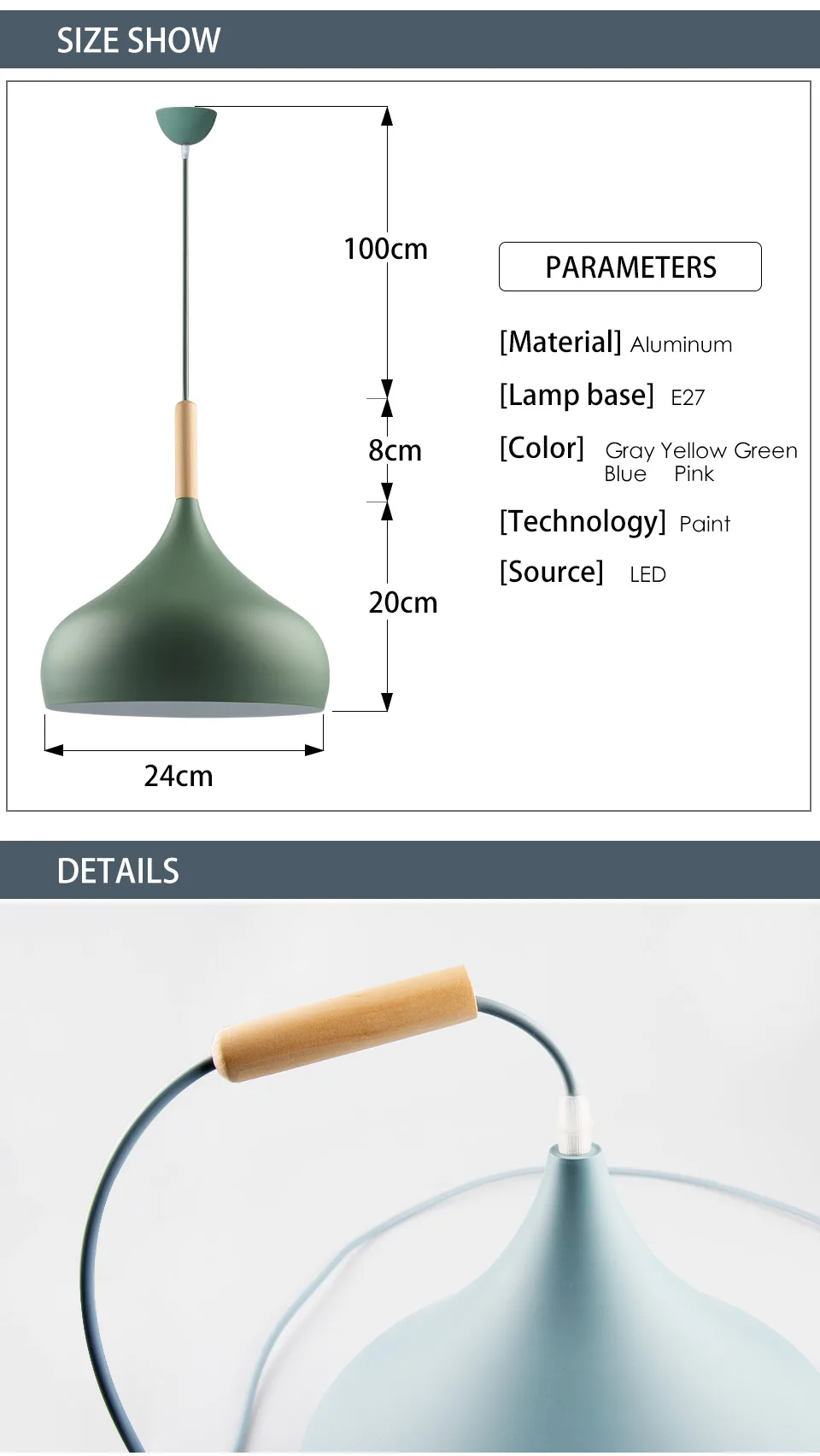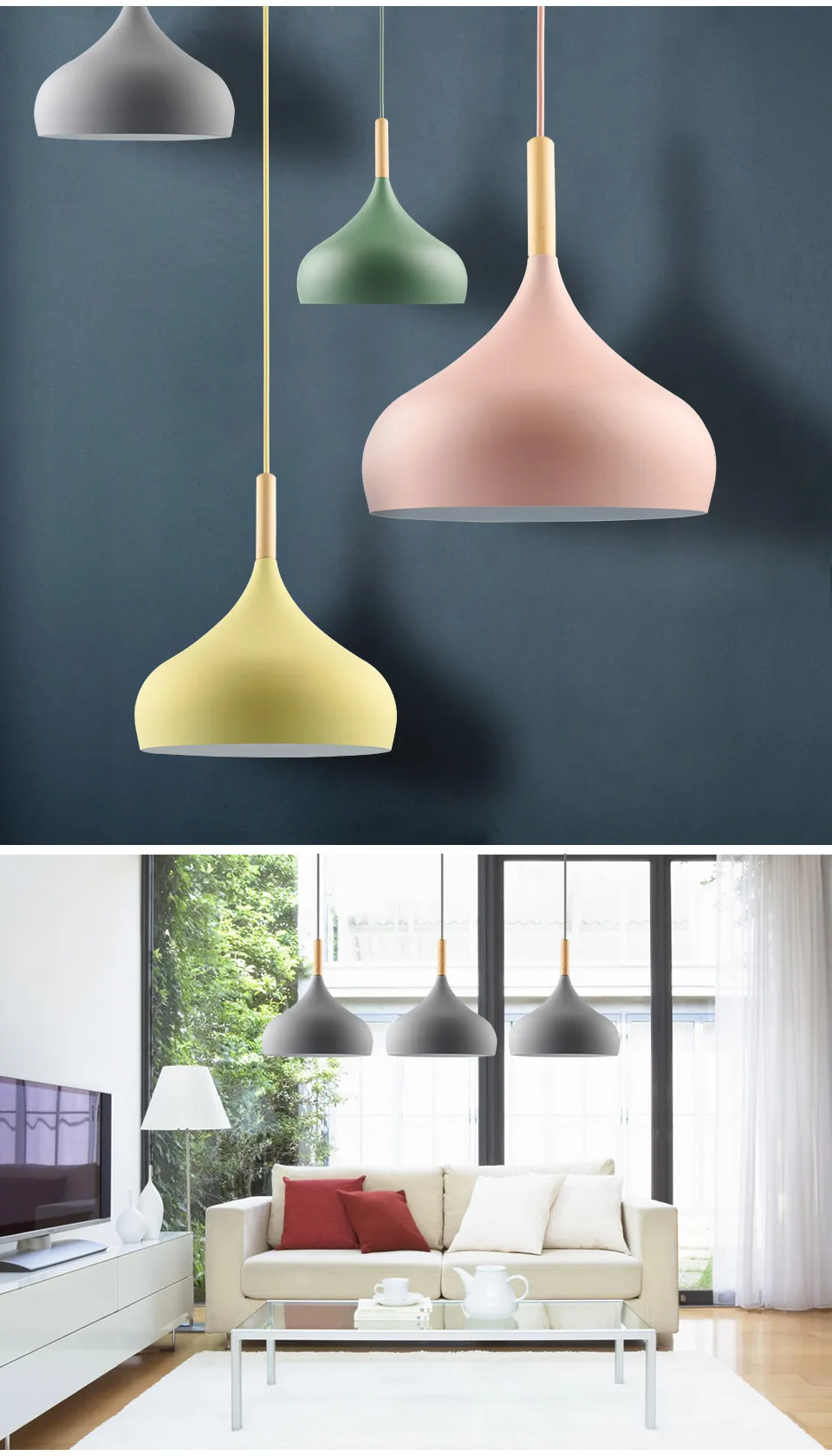 Люстра, креативный ресторан, абажур, гостиная, столовая, бар, кафе, современная люстра, красочный макарон Характеристики: 1. Название продукта: подвесные светильники 2. Тип основания: E 27 3. Цвет абажура: белый, черный, синий, розовый, желтый 5. Напряжение: AC90-240V 6. Тип источника: лампа накаливания/энергосберегающая лампа/светодиодный светильник 7. Лампочки включены: нет 8. Площадь облучения: 5-10 квадратных метров 9. Размер: диаметр 24 см, присоска Потолочная пластина d8см, Тяговая веревка 100 см (высота может быть отрегулирована) 10. Материалы: алюминий. 11. Применение: гостиная, спальня, детская комната, детский сад, супермаркет, магазин одежды и т. Д.