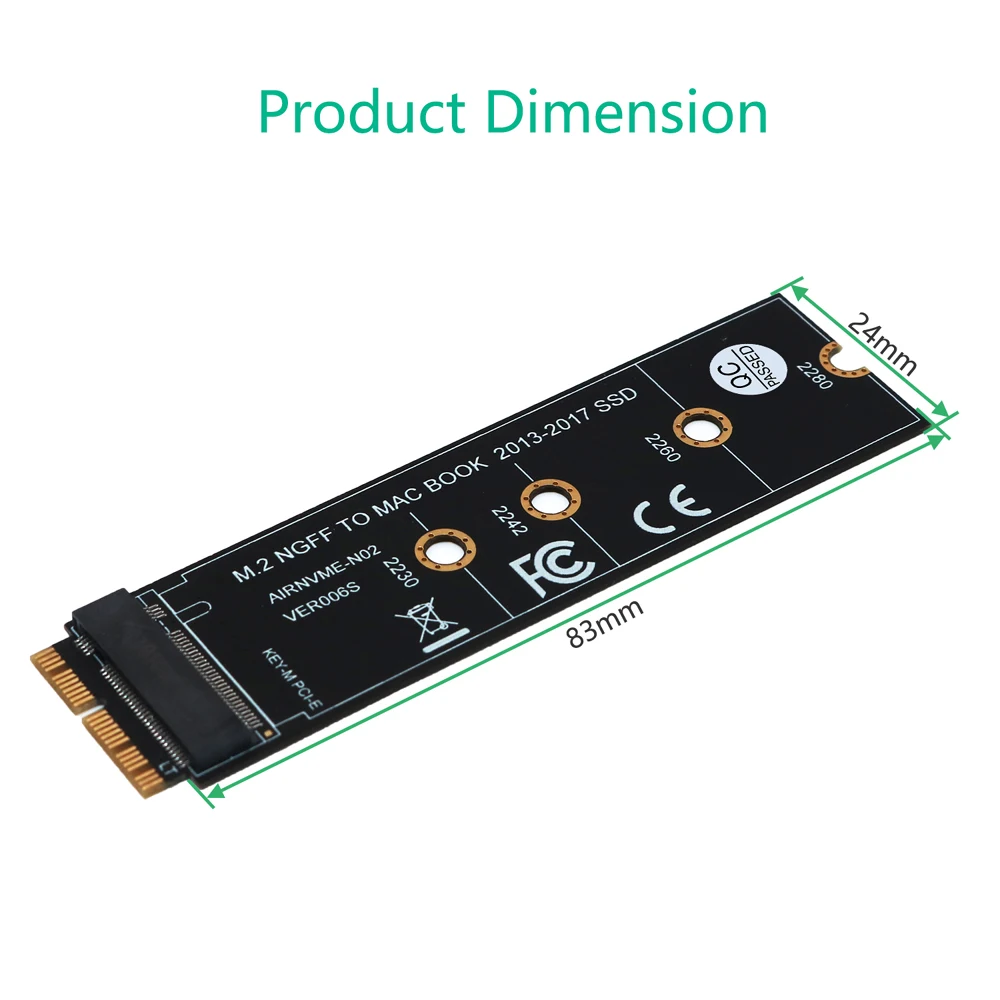 Brand NameQINDIANModel NumberAC4458PackageYesInterface TypePCI ExpressInterface TypeNGFFMeasurement unit100000015Each pack1Interface Typepcie to m2 adapterApply toAHCI Protocol 2230-2280 PCIe x4 M.2 (NGFF) SSDCompatible with2013 2014 2015 MACBOOK Air Mac ProForA1465 A1466 A1502 A1398M.2M KeyTypem.2 adapterFeature 1m.2 ssd pcie adapterFeature 2m2 pcie adapterFeature 3m2 ssd adapterFeature 4pcie ssd adapter