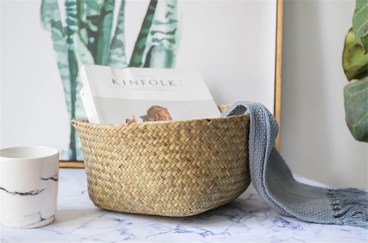 Foldable Natural Seagrass Woven Storage Basket home decoration basket hand-woven plants Storage Basket household storage baskets