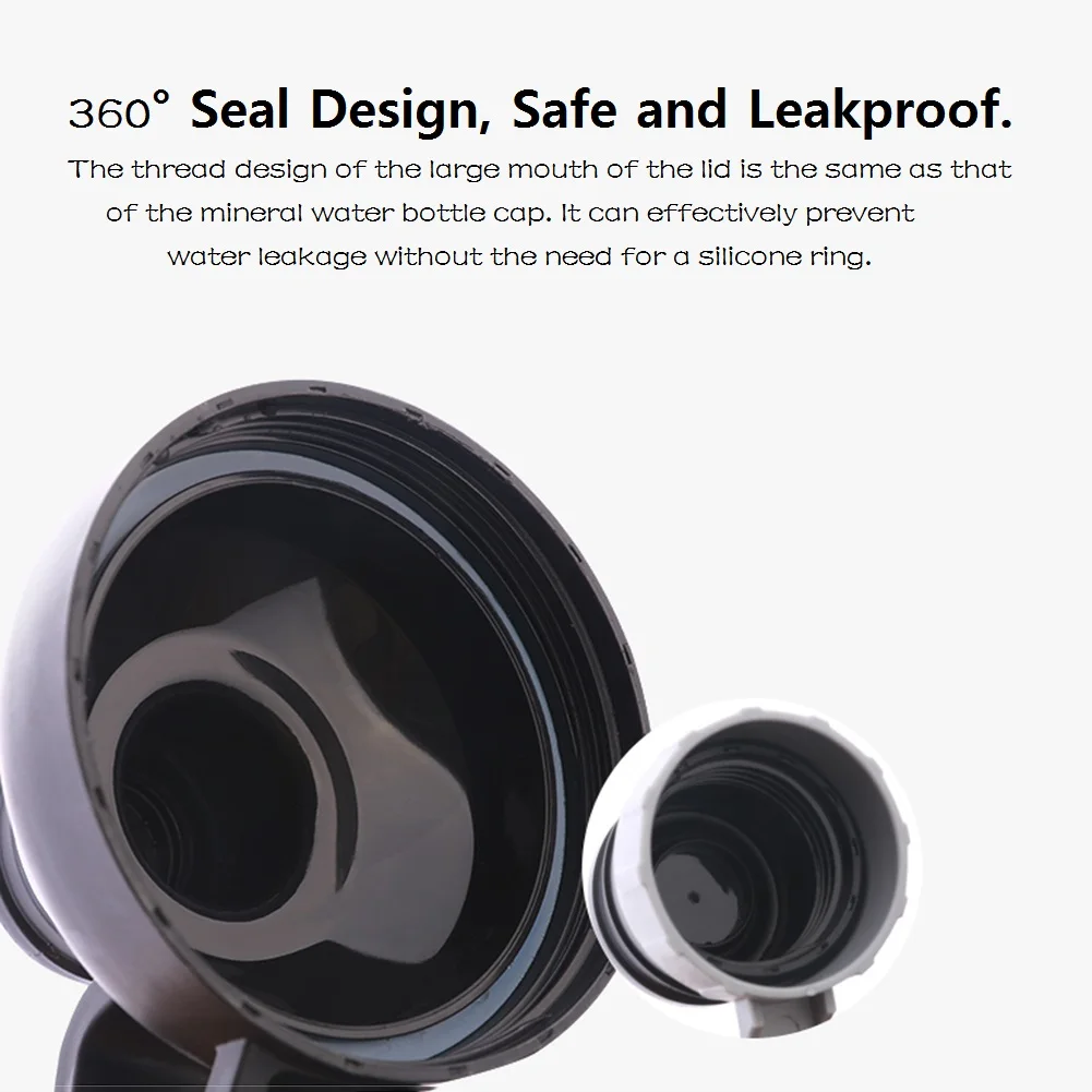 * 4. Конструкция уплотнения 360 °, безопасная и герметичная. Дизайн резьбы большого рта крышки такой же, как у крышки бутылки с минеральной водой. Он может эффективно предотвратить утечку воды без необходимости в силиконовом кольце. Рот изготовлен из пищевого силикона и эффективно запечатан.