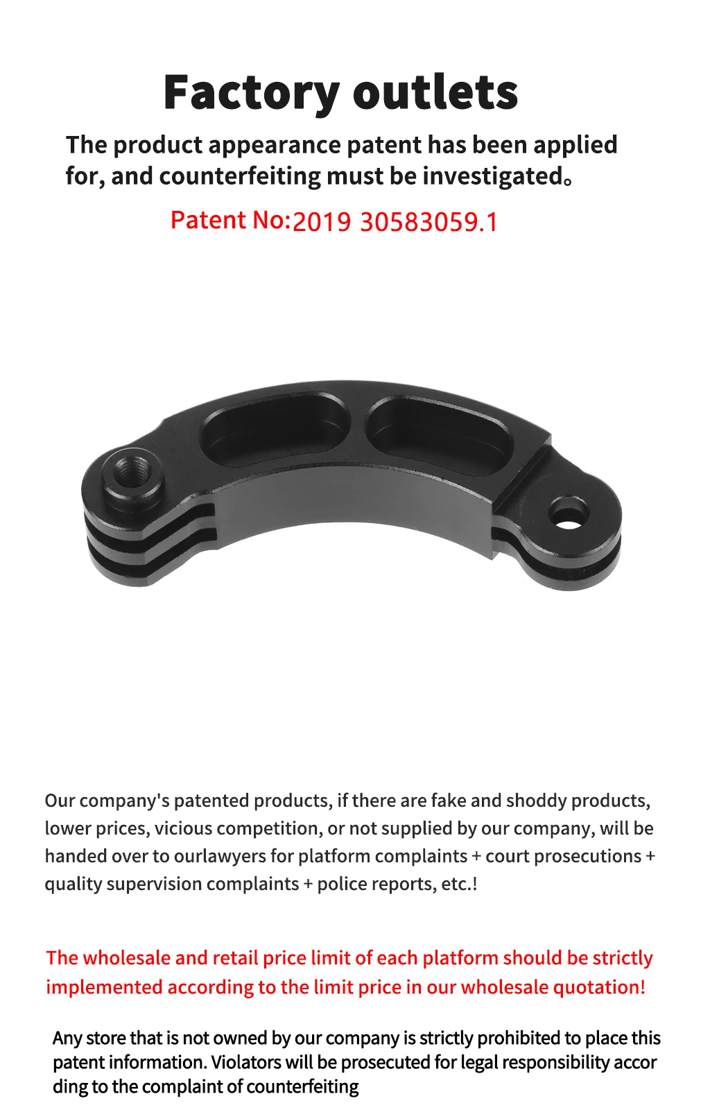 Application: helmet bracket extension curved rod / GOPRO / SJCAM / YI / DJI and other sports cameras