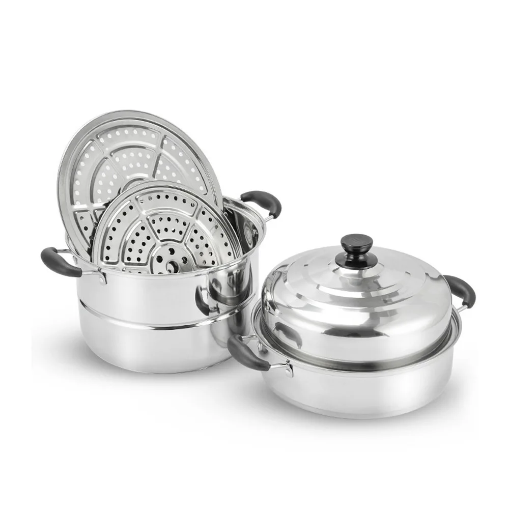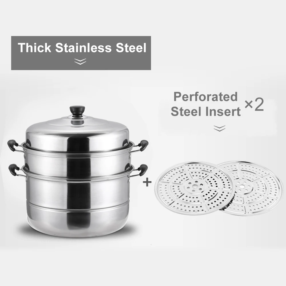Продукт изготовлен из высококачественной нержавеющей стали и имеет кольцевое дно, подходит для различных печей, газовых печей, электрических печей, индукционных плит, печей. Большой емкости для трехуровневая Пароварка может удовлетворить потребности многим семьям.