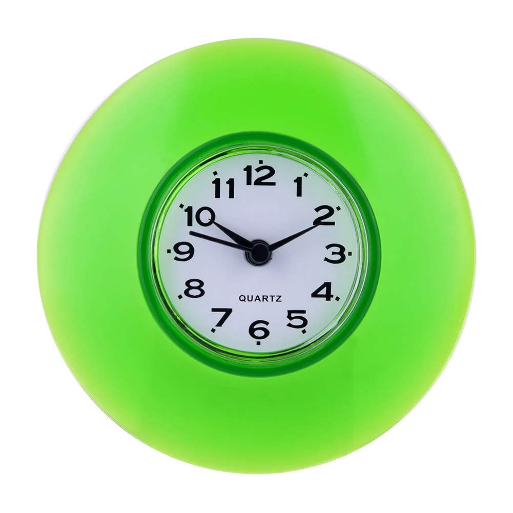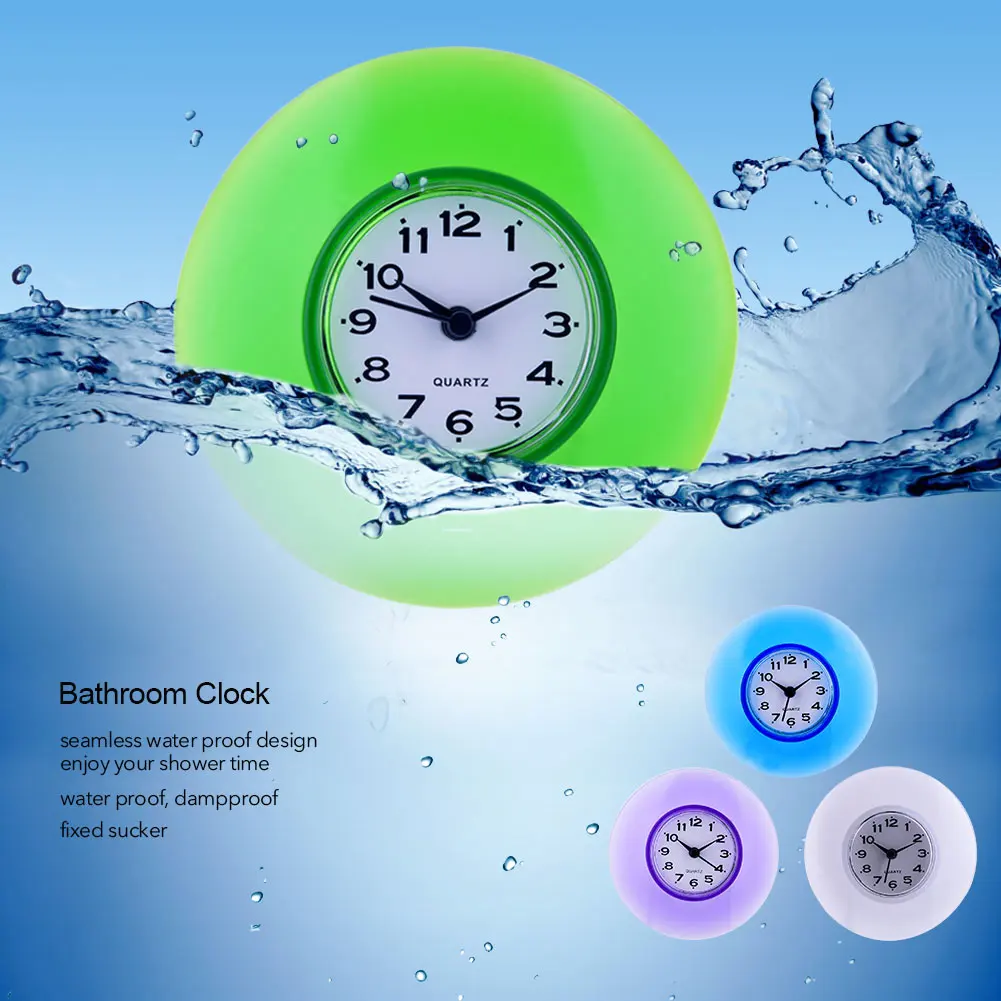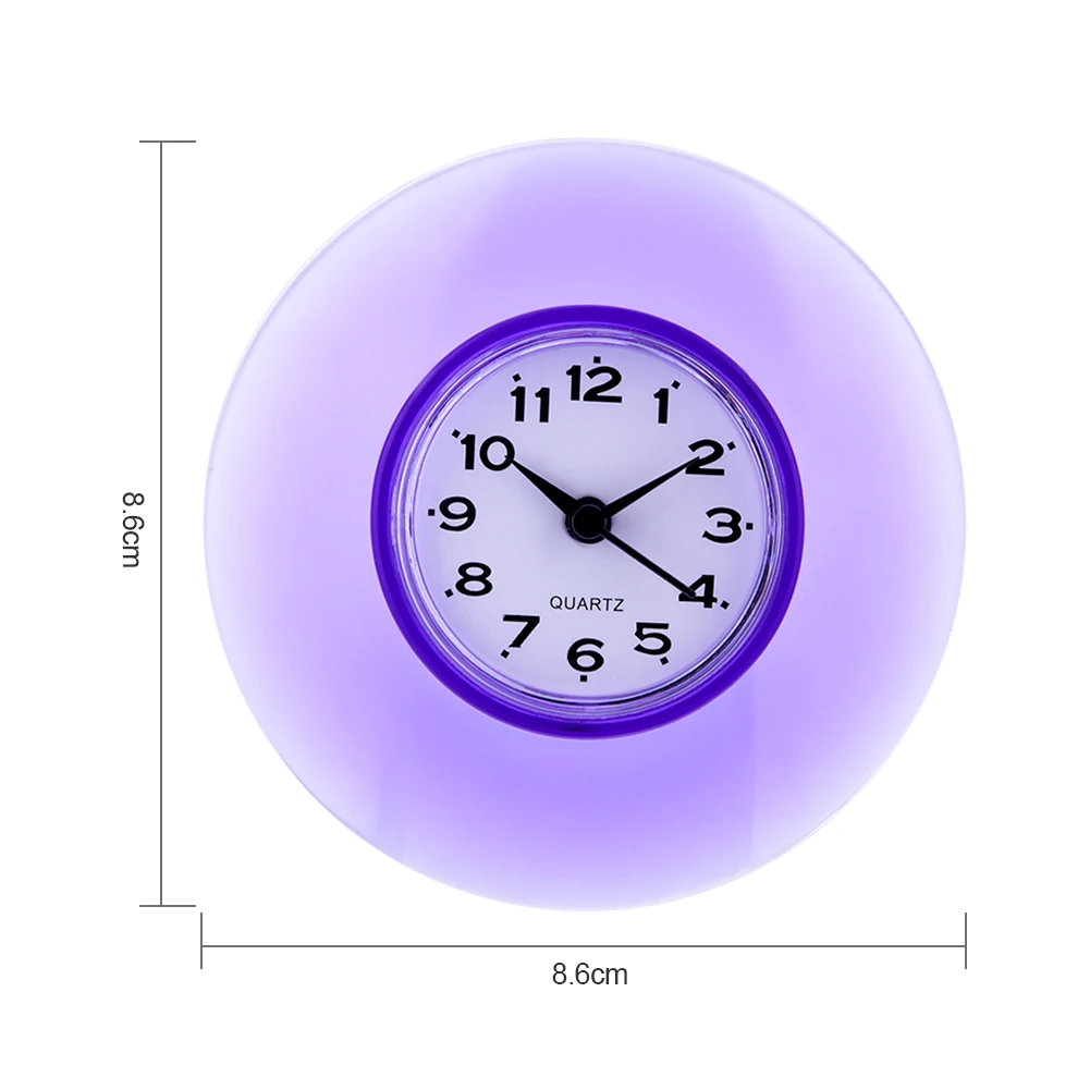 С этими водонепроницаемыми часами вы можете провести время в ванной или кухне очень удобно во время утренней спешки. Часы могут организовать ваше время разумно, чтобы избежать задержки в школе, работе или любых назначений. Эти часы можно прикрепить к гладкой сухой поверхности с большой и сильной присоской, легко установить. Эти милые часы также могут стать украшением для окружающей среды. Подходит для ванной комнаты, кухни, гостиной, спальни и т. д.
