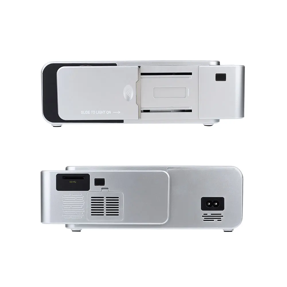 Технические характеристики: европейские правила/США Цвет: серебро Проекции Технология: 4 дюйма ЖК-дисплей Разрешение логистики: 1280*720 Разрешение поддержки: 1920*1080, 1280*720, 800*480 Wi-Fi с экраном: Поддержка Проекция точки-точки Wi-Fi: поддержка Кабель для передачи данных для мобильного телефона, ссылка на тот же экран: Поддержка Светильник Тип лампы: светодиодный светильник источник Объектив: F = 140 Контраст: 1000:1 Объектив: ручной фокус Интерфейс: входной сигнал HDMI/3,5 MM/dual USB/SD карты Интерфейс/мощность Интерфейс Проектор светильник: светодиодный светильник (более 30000 часов) Передаточное число проектора: 16:9/4:3 Функция откидной книжки: Поворот на 360 градусов Коррекция Keystone: V / - 15 ° Язык меню: китайский, английский, французский, западный, польский, русский, Арабская и др. Расстояние проекции: 1-4 метра Размер проекции: 30-170 дюймов Динамик: 4 евро 3 Вт Световой поток: 2000lm Общая мощность: 70 Вт, макс. Мощность Напряжение питания: AC100-240 50/60HZ Размер продукта: 25*17*8 см