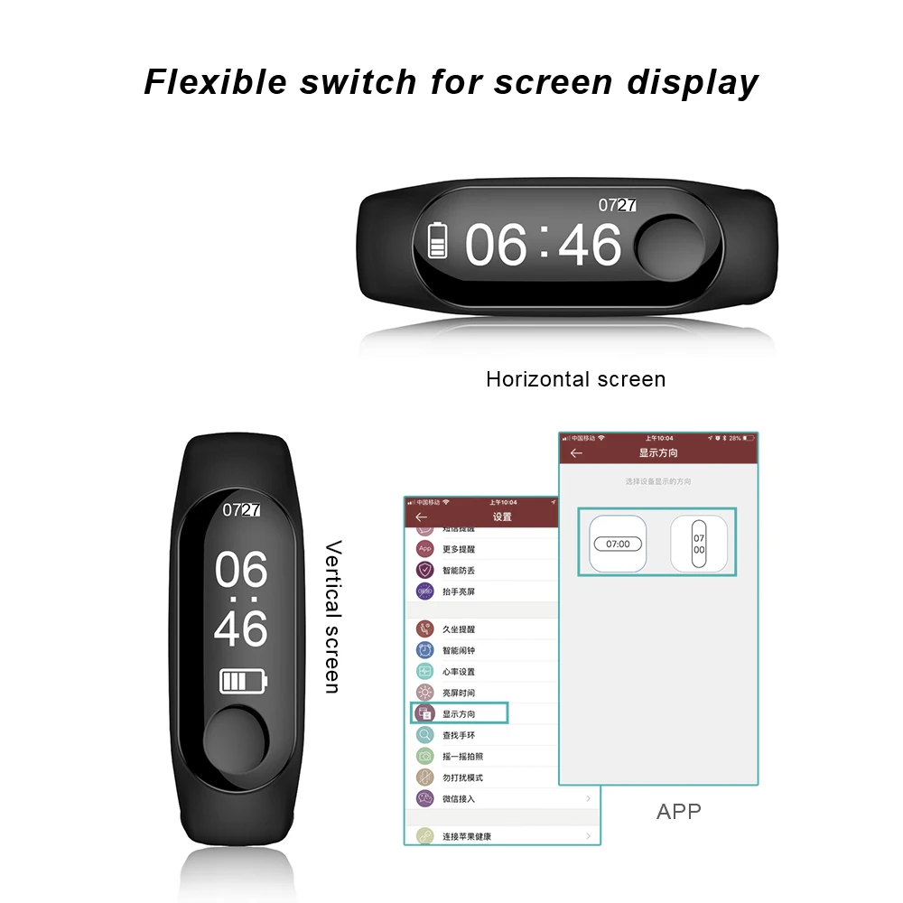 0,87 "oled-экран, ссылка на приложение более интуитивно понятна. Уведомления о звонках, легко связаться. Стандартная двигательная функция (шаг, расстояние, калории), мониторинг сна (время сна, качество сна). Экологически чистый ремешок из термопластичного полиэтилена носит с чувством изоляции. Мониторинг изменений физического здоровья, обнаружение данных о состоянии здоровья, отображение состояния риска и оценка результатов.