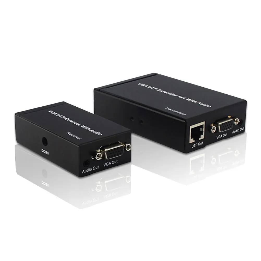 -Этот расширенный сплиттер VGA1 x1 (выход UTP) интегрирует функцию распределения и Расширенную функцию. Он вводит сигнал VGA и аудиосигнал, и приемник получает сигнал от передатчика через CAT5 и передает его на дисплей. Расстояние передачи может достигать 300 м через кабель CAT-5e/6.