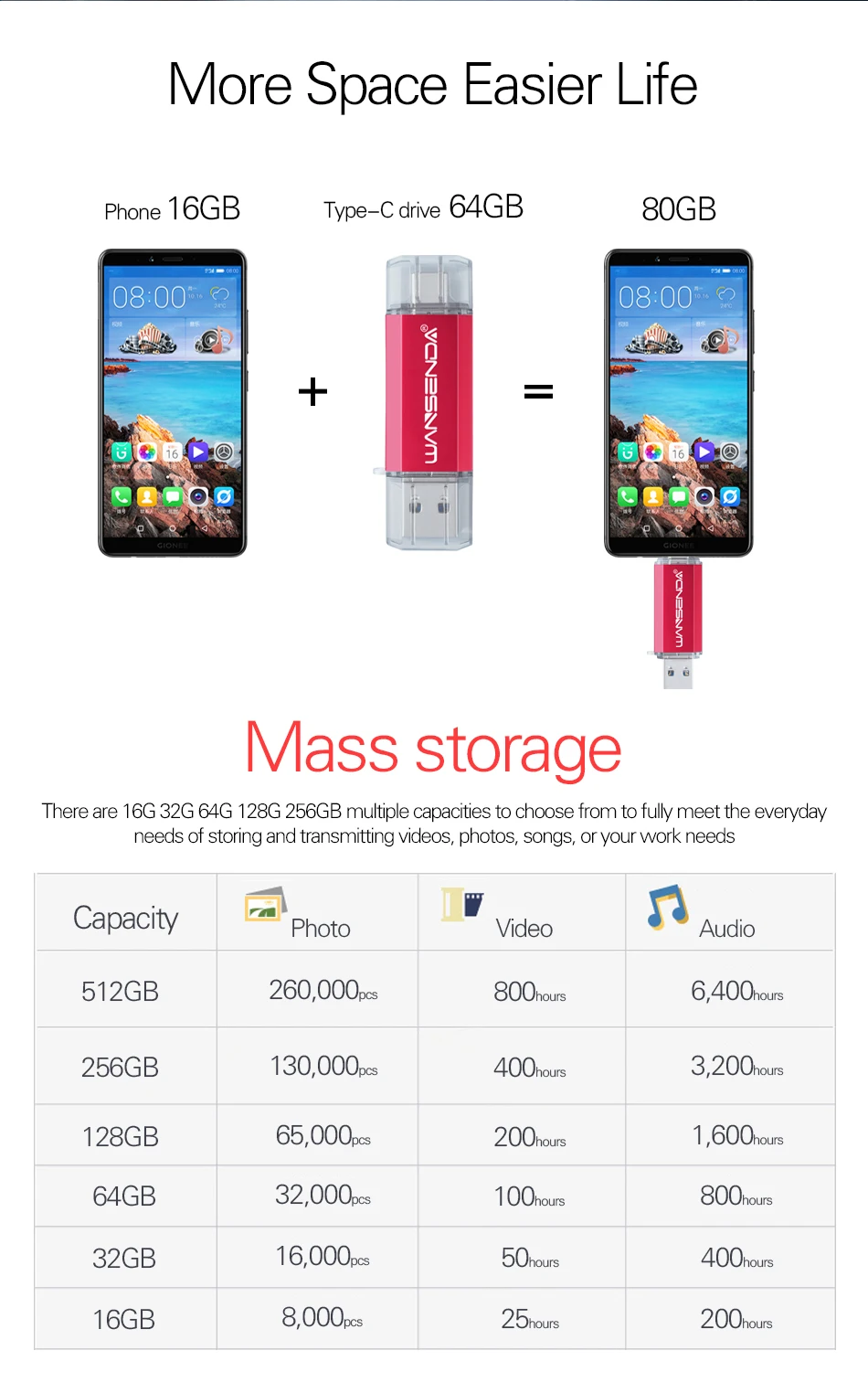 5. Емкость: 16 Гб/32 ГБ/64 Гб/128 ГБ/256 ГБ/512 ГБ.