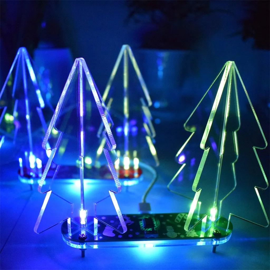 DIY полноцветный светодиодный электронный Обучающий набор акриловая 3D Рождественская елка