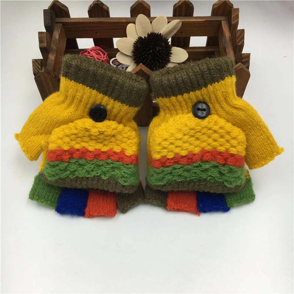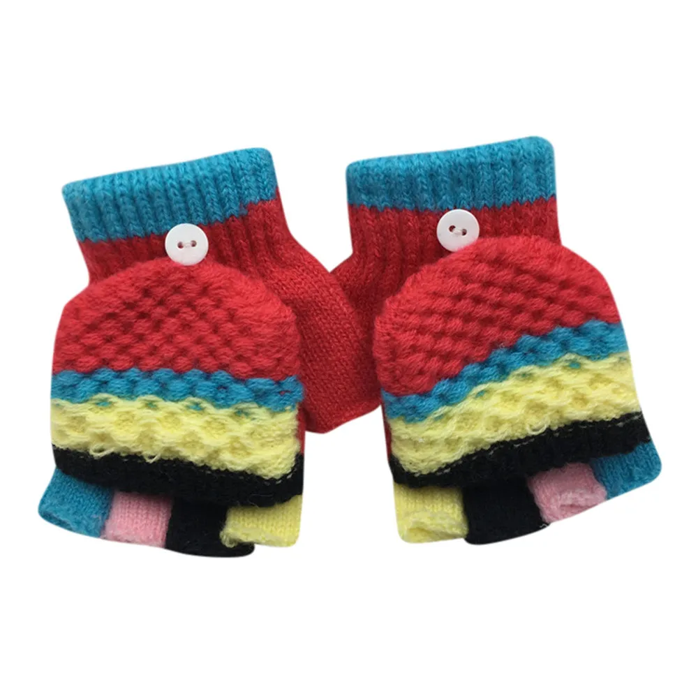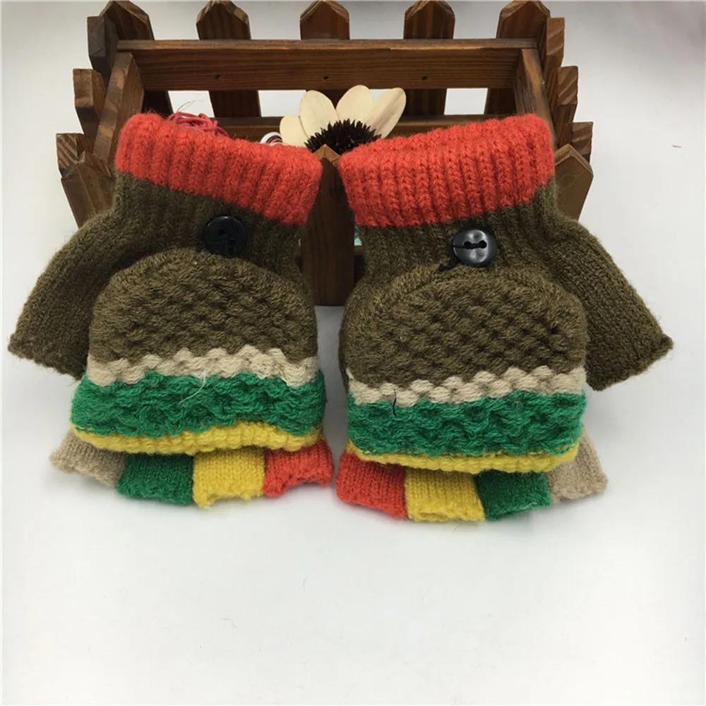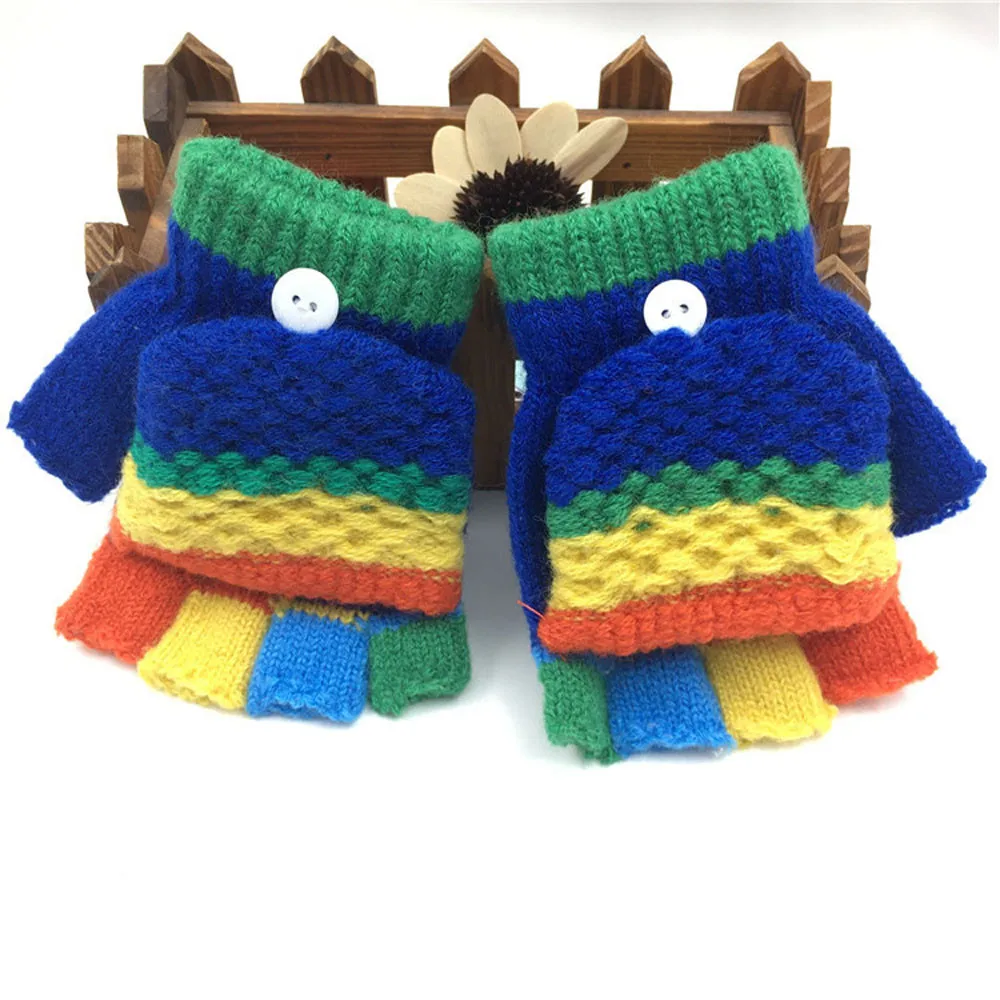 Милые теплые зимние перчатки в стиле пэчворк для маленьких мальчиков и девочек