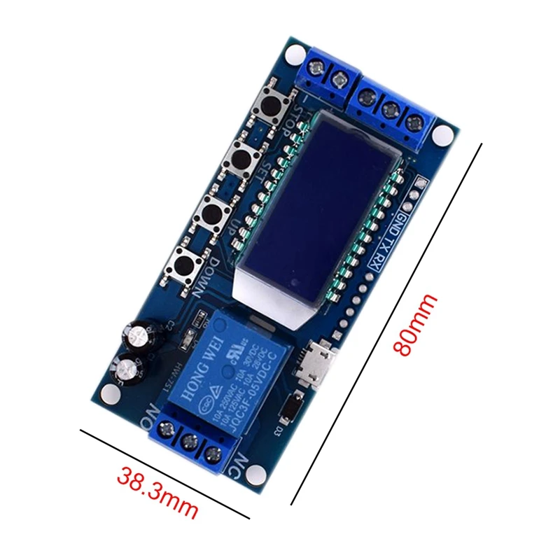 P4:Relay will keep OFF for time CL after get trigger signal and then relay keep ON for time OP and then relay will OFF.P5:Relay will keep ON for time OP after get trigger signal and then relay keep OFF for time CL and then loops the above action.Module will reset and stop timing and relay OFF if get trigger signal again during loops.The number of cycles (LOP) can be set.