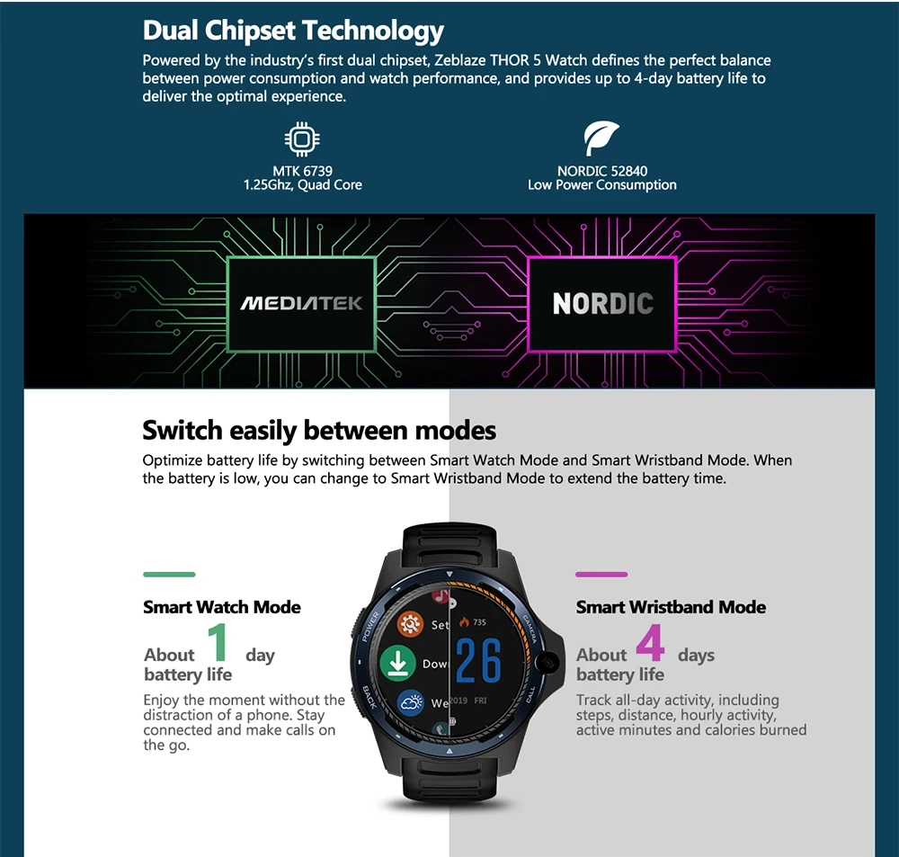 ЦП: MTK6739, 1,25 ГГц, четырехъядерный + нордическая 52840 (технология двойного чипсета)