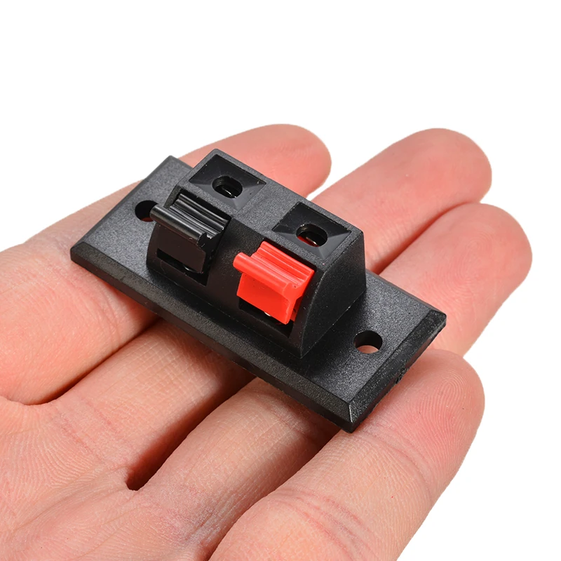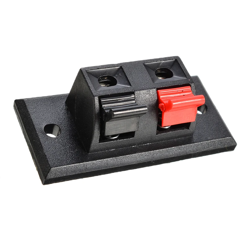 2 контактных разъема, 1 красный, 1 черный, 2 положения, конструкция пружинной нагрузки, тип нажима, клемма динамика.