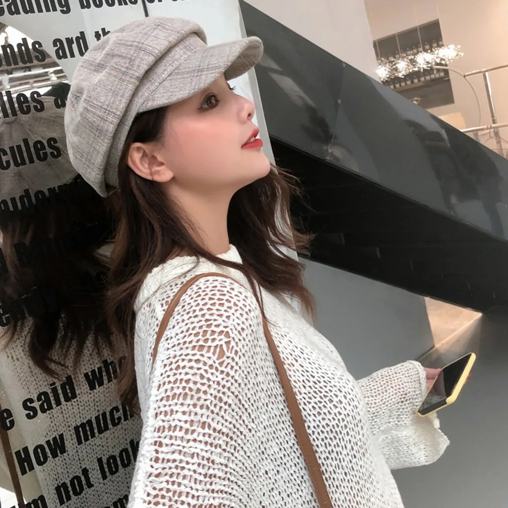 Зимняя винтажная женская зимняя клетчатая шапка газетный берет, кабереты