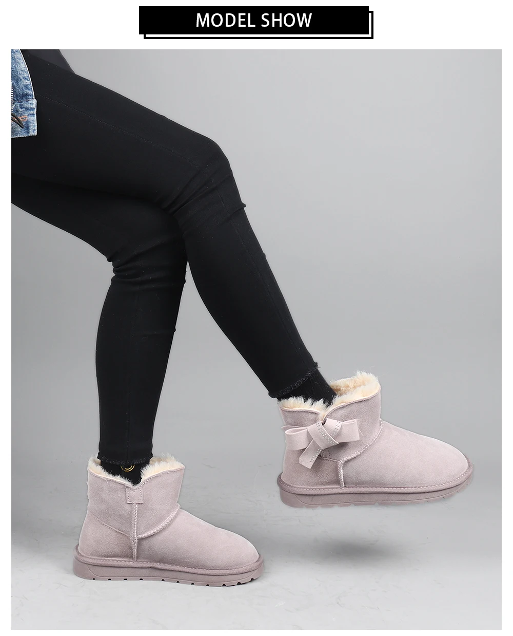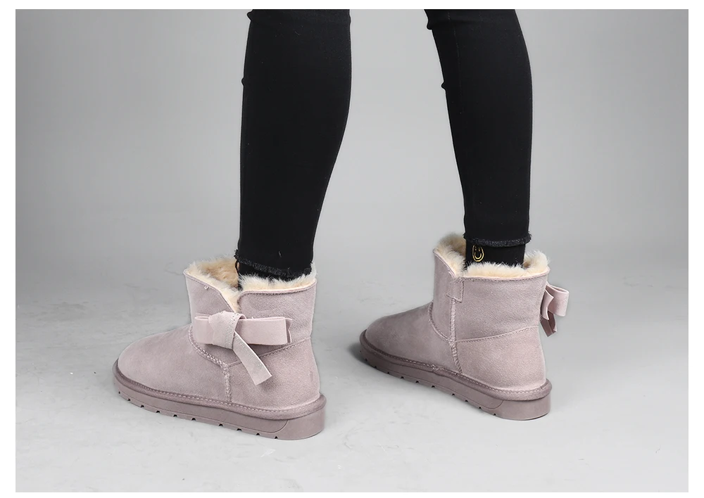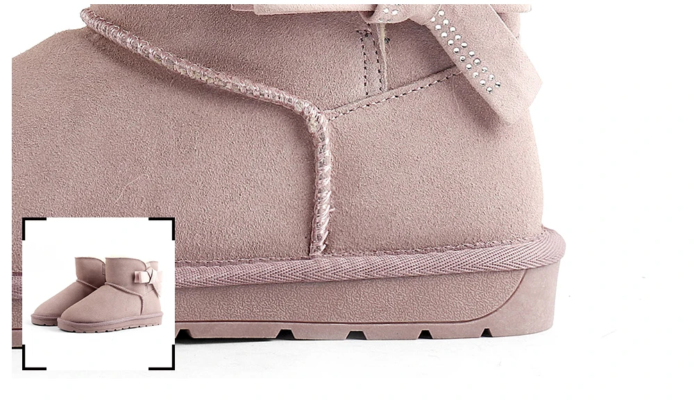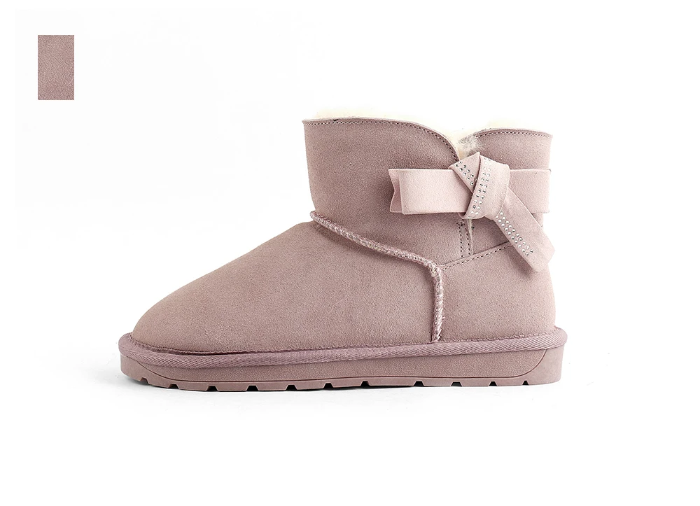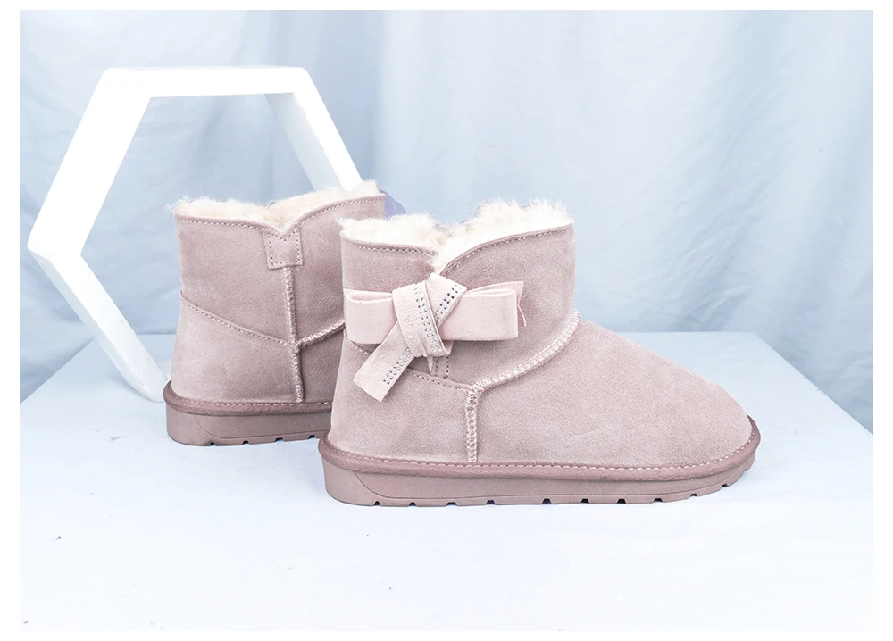 RJN/милые розовые зимние сапоги; Стелька из шерсти; Стильная обувь на низком каблуке с круглым носком и бантом-бабочкой; Женские зимние ботильоны; RX35