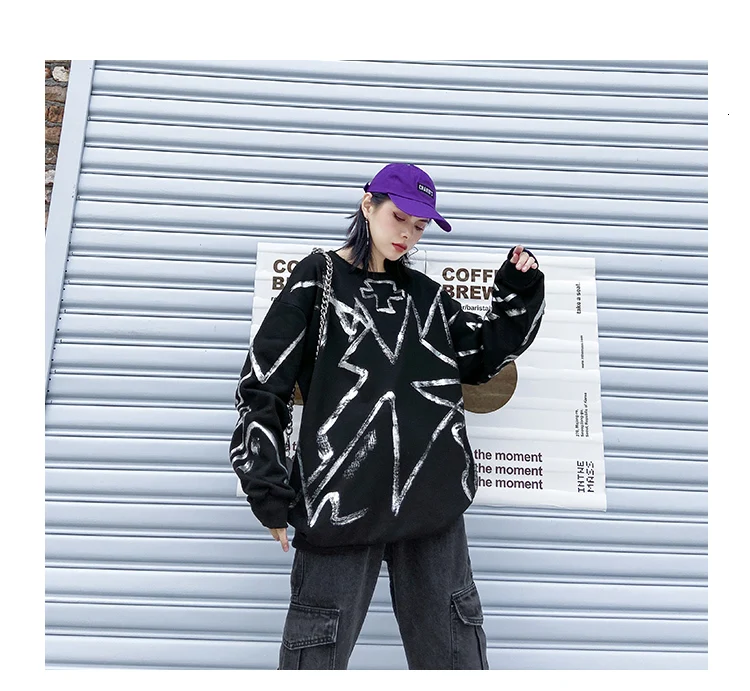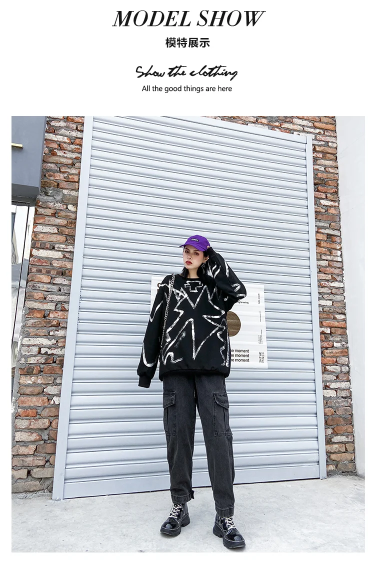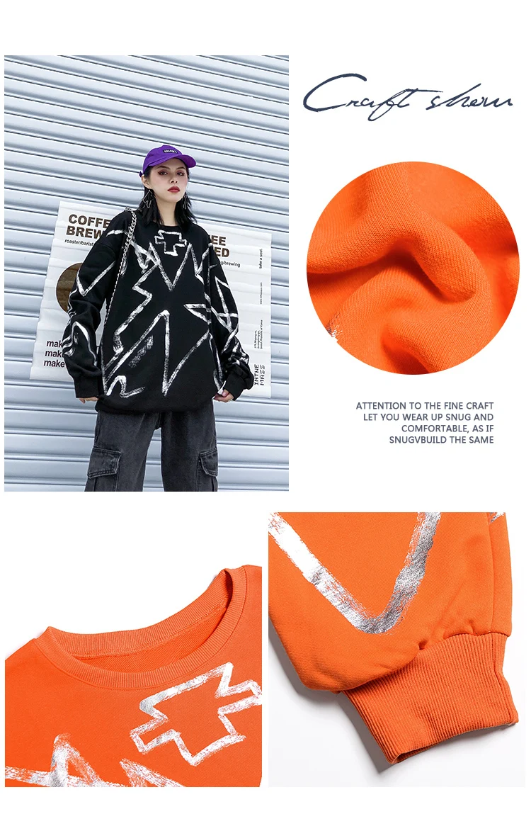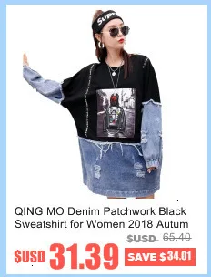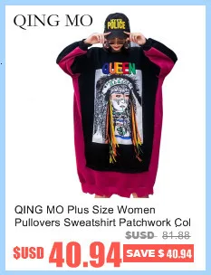 QING MO черный оранжевый женский необычный свитер 2019 Женская толстовка с принтом