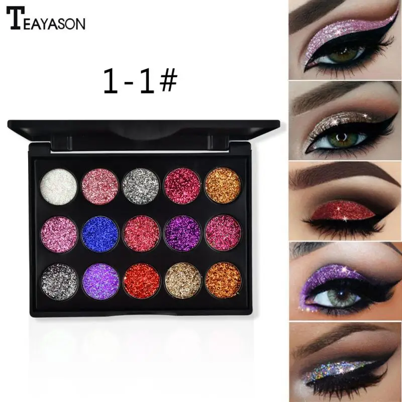 TEAYASON 15 цветов Алмазные блестки тени для век лоток блестящий порошок Блестящий Блеск Тени для век сценический макияж блестки макияж диск