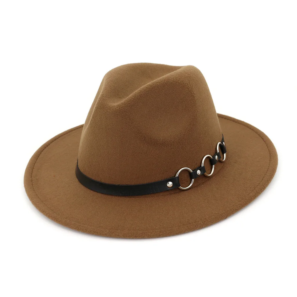 Мужская и женская винтажная шляпа с широкими полями и пряжкой на ремне, Регулируемые головные уборы